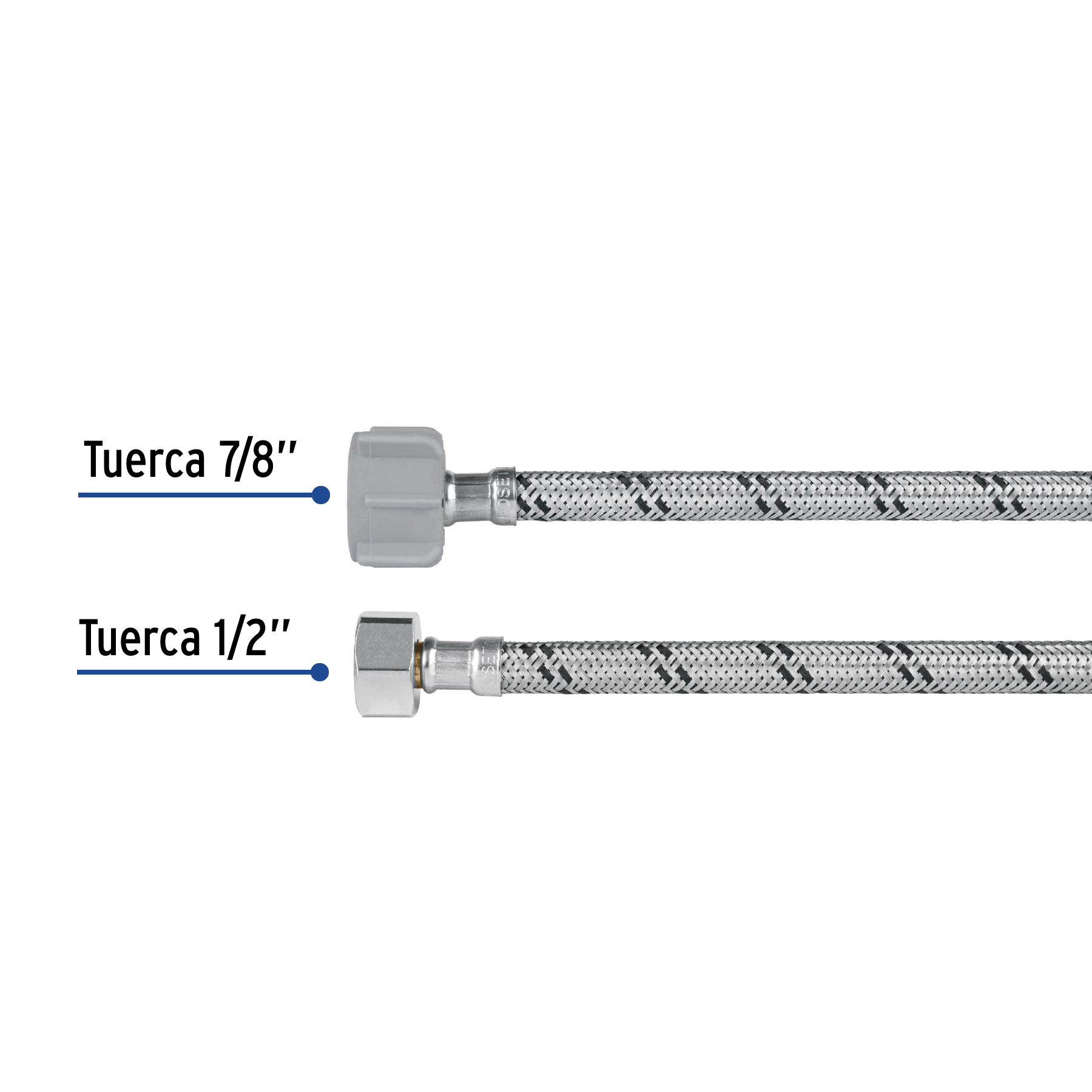 Manguera p/WC, acero inox, 1/2’x7/8′, 50 cm, plástico/latón