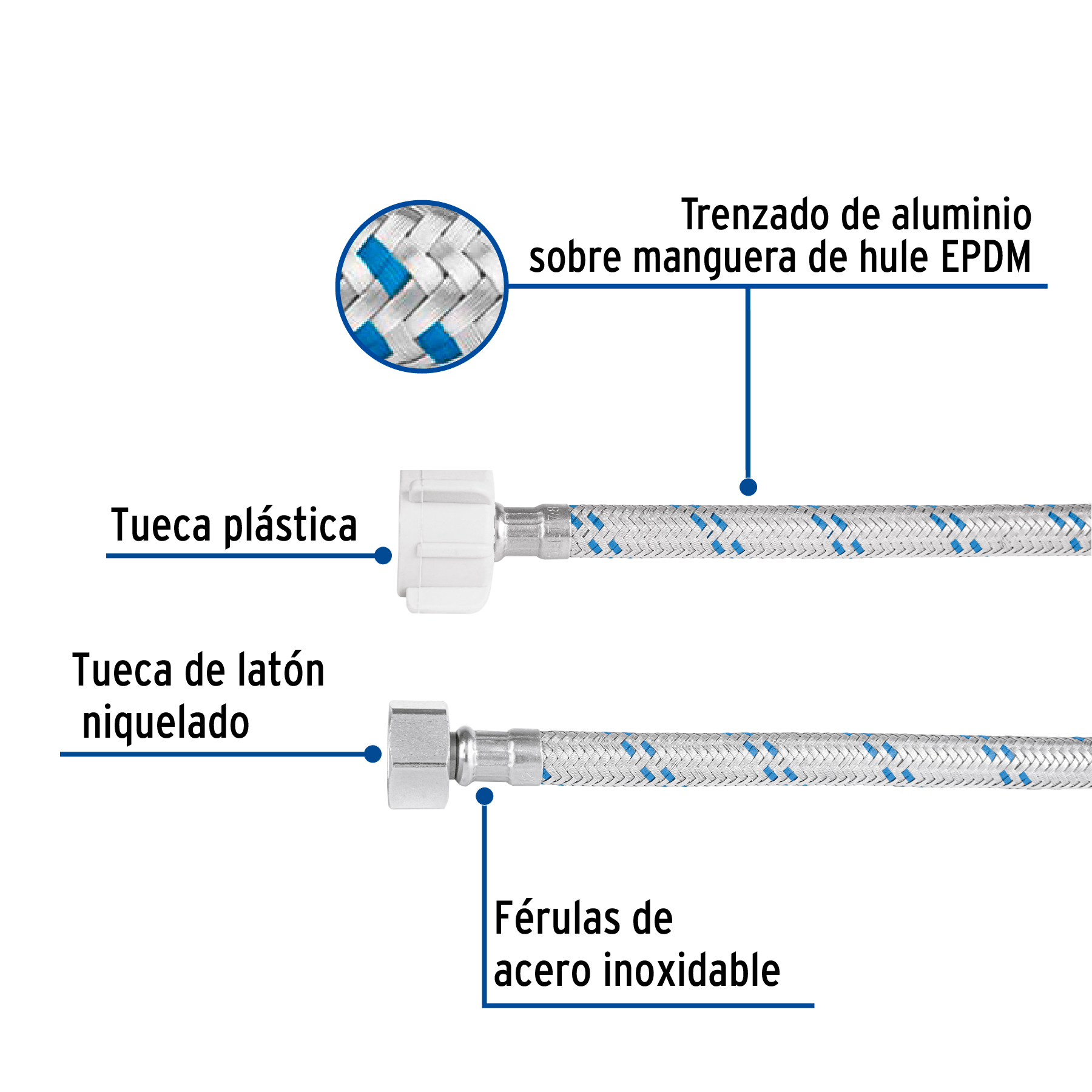 Manguera p/WC, aluminio, 1/2′ x 7/8′, 50 cm, plástico/latón