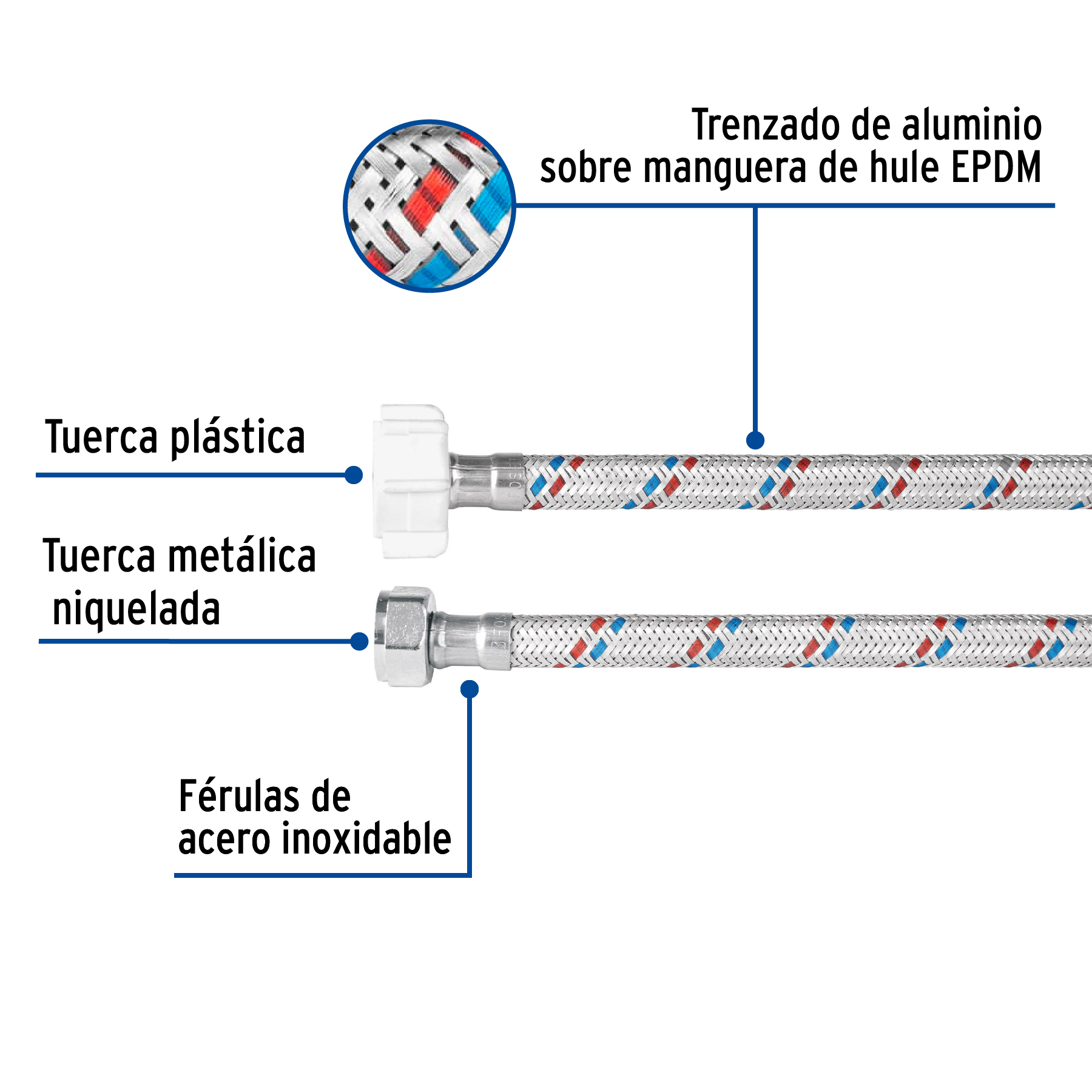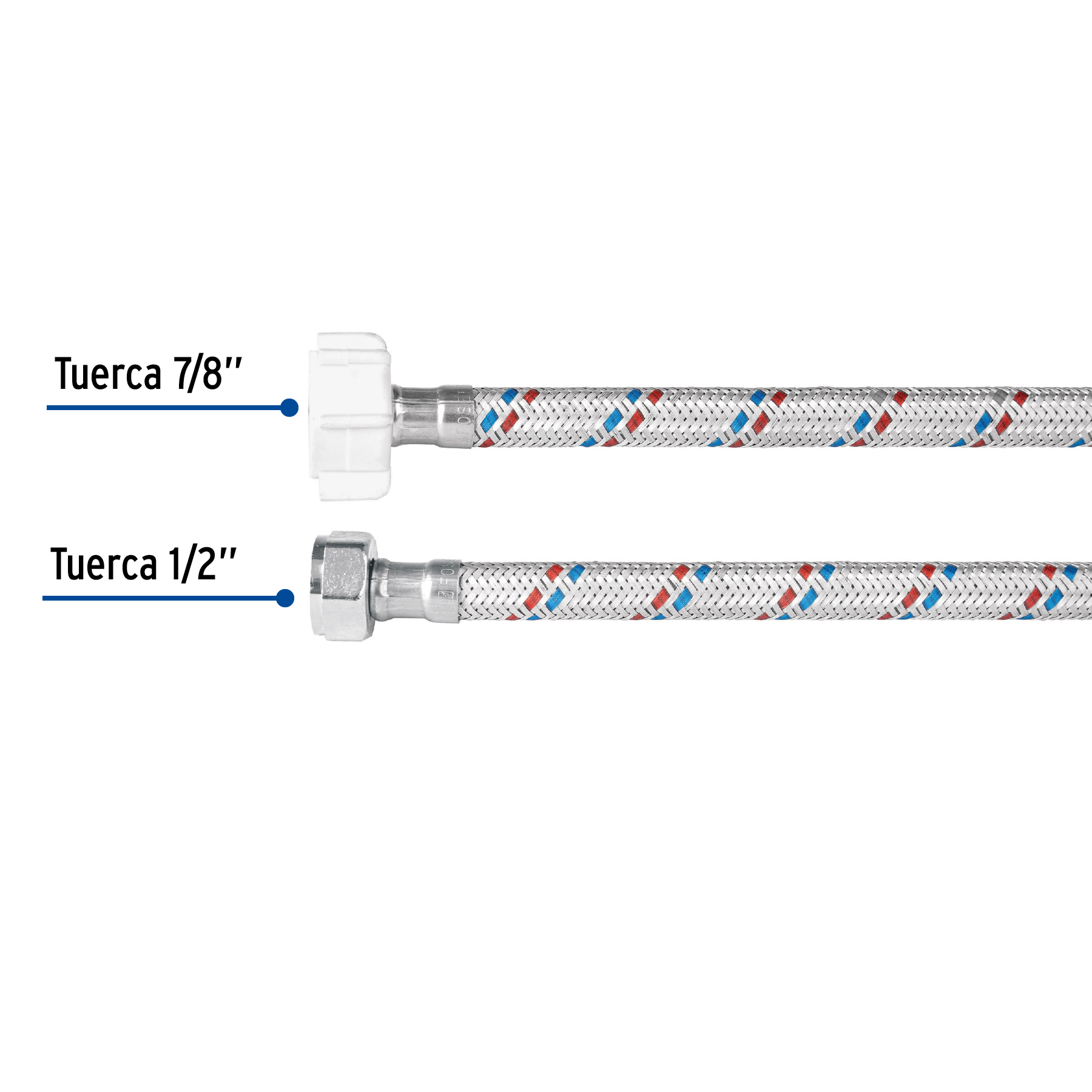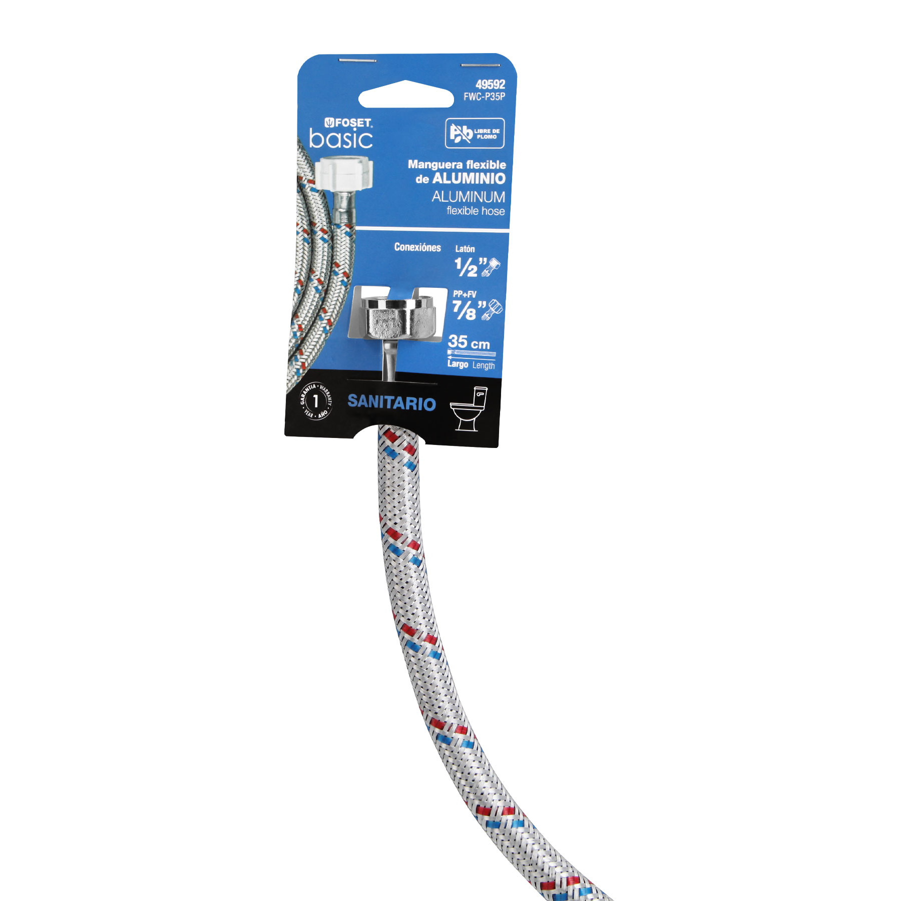 Manguera p/WC, aluminio, 1/2’x7/8′, 35cm, plást/metal, Basic