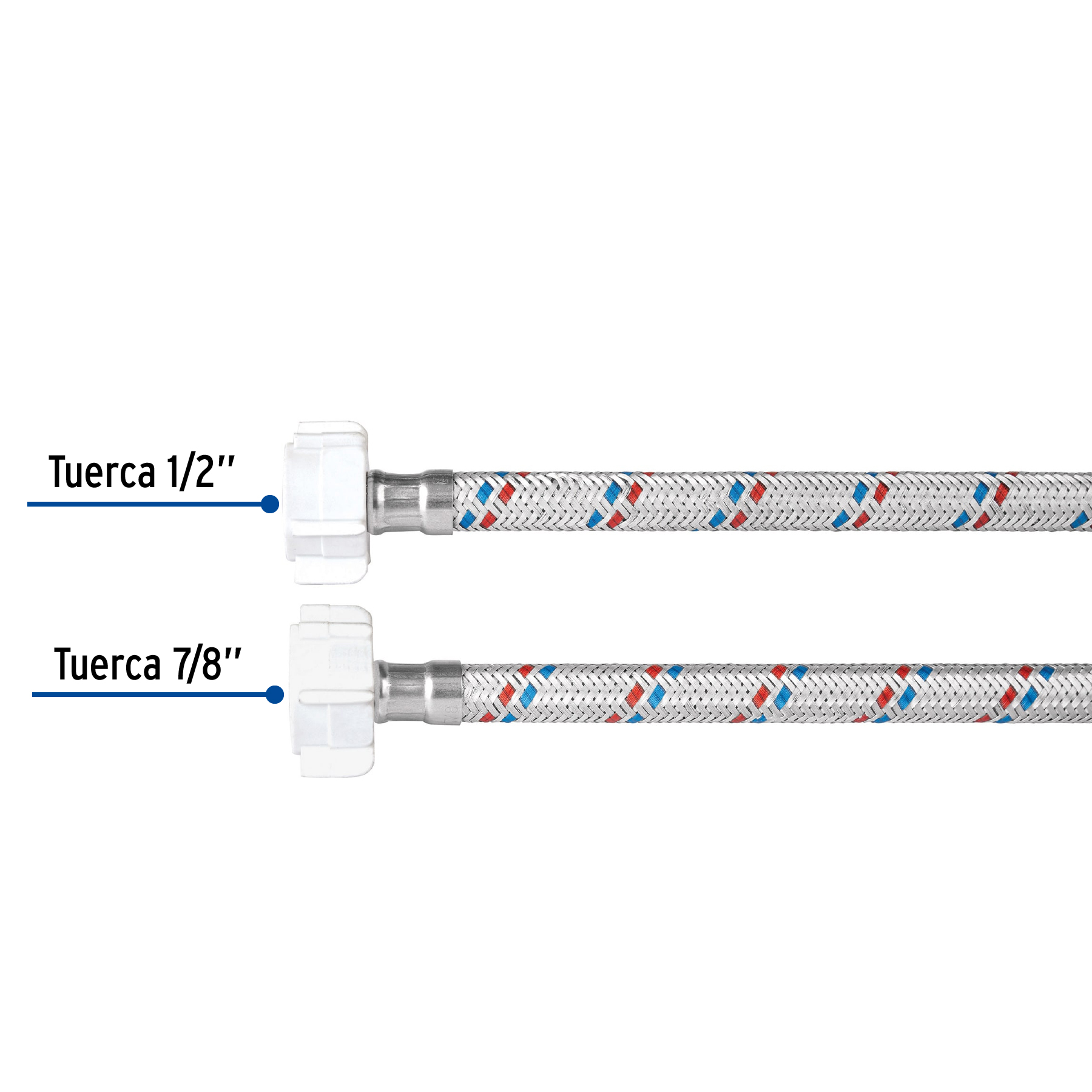 Manguera p/WC, aluminio, 1/2’x7/8′, 35cm, plást/plást, Basic