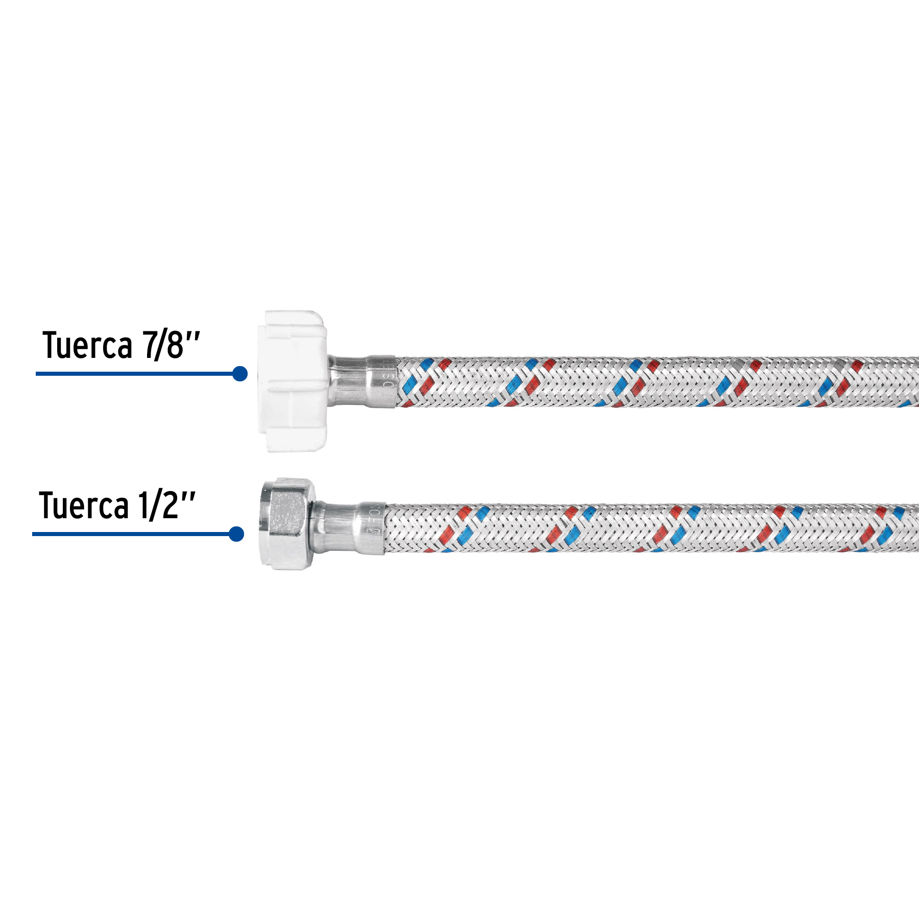 Manguera p/WC, aluminio, 1/2’x7/8′, 50cm, plást/metal, Basic