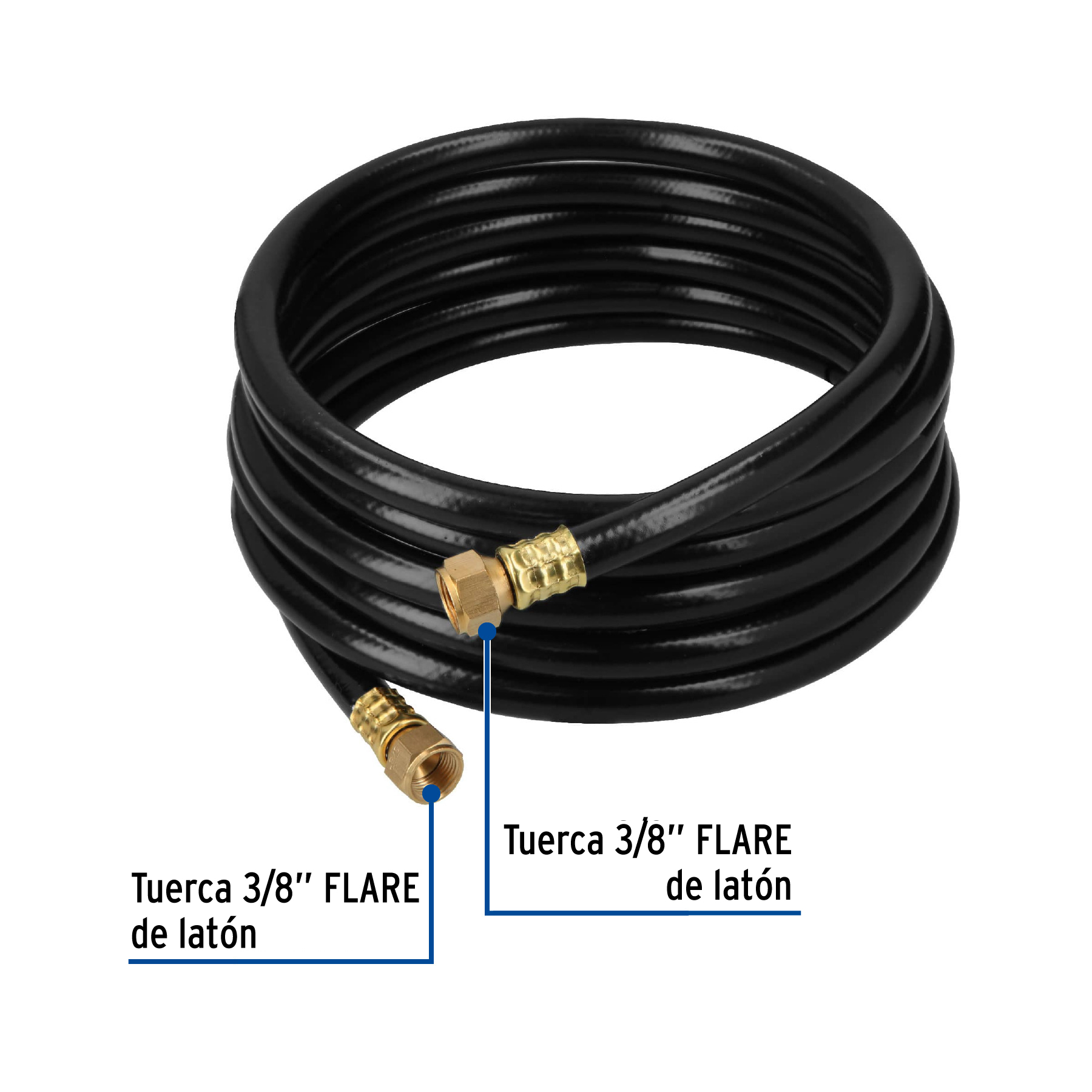 Manguera para gas, PVC negra, 3/8′ flare, 4 m, FOSET