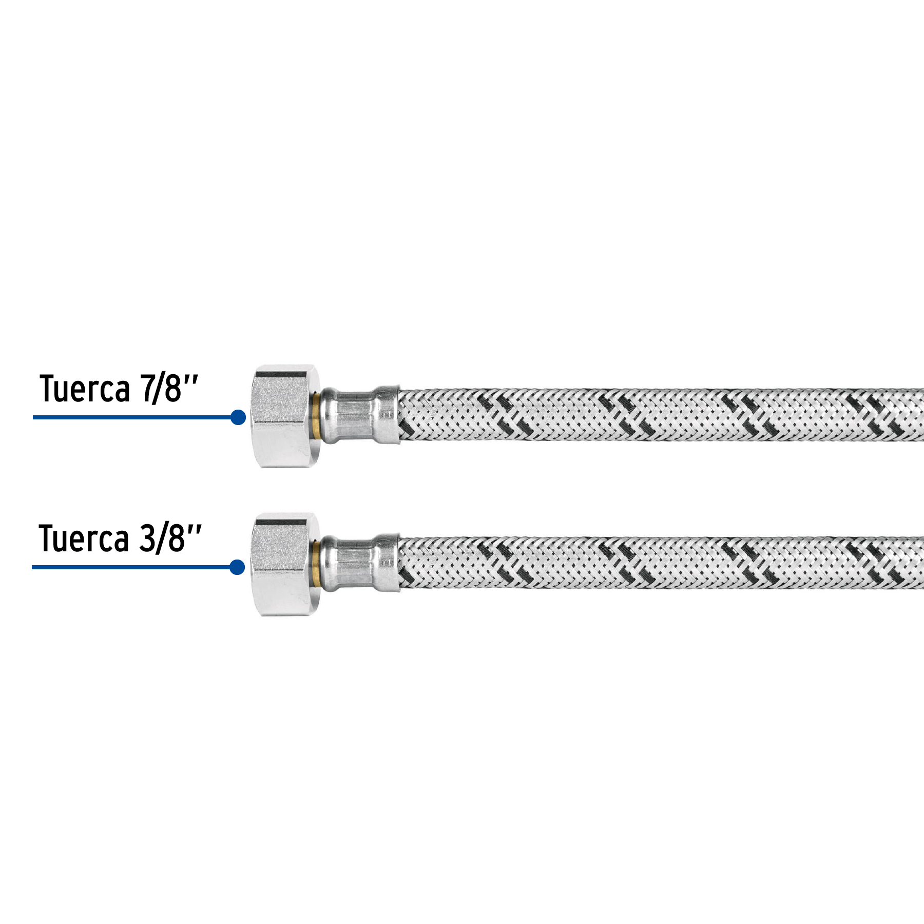 Manguera p/WC, acero inox, 3/8’x7/8′, 40cm, latón/latón