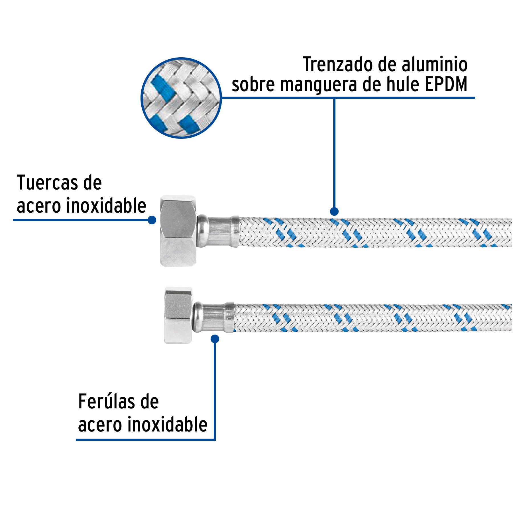 Trenzado de acero inoxidable sobre manguera de hule EPDM para mayor durabilidad y resistencia a la presión