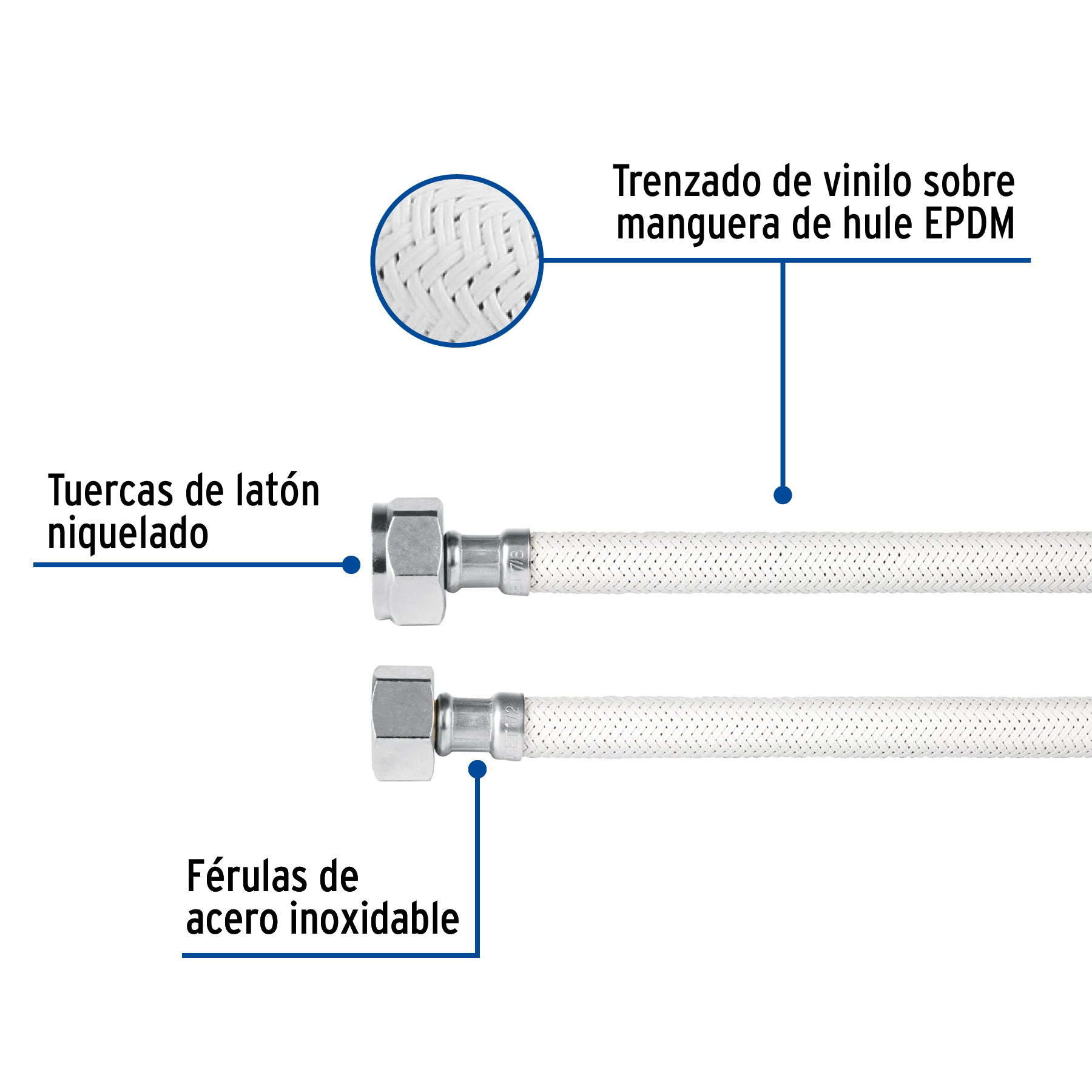 Manguera p/WC, vinilo blanco, 1/2′ x 7/8′, 35 cm