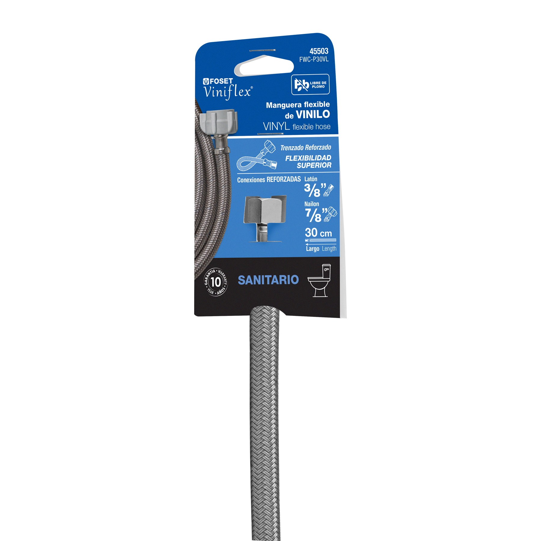 Manguera p/WC, vinilo gris, 3/8’x7/8′ , 30cm, plástico/latón