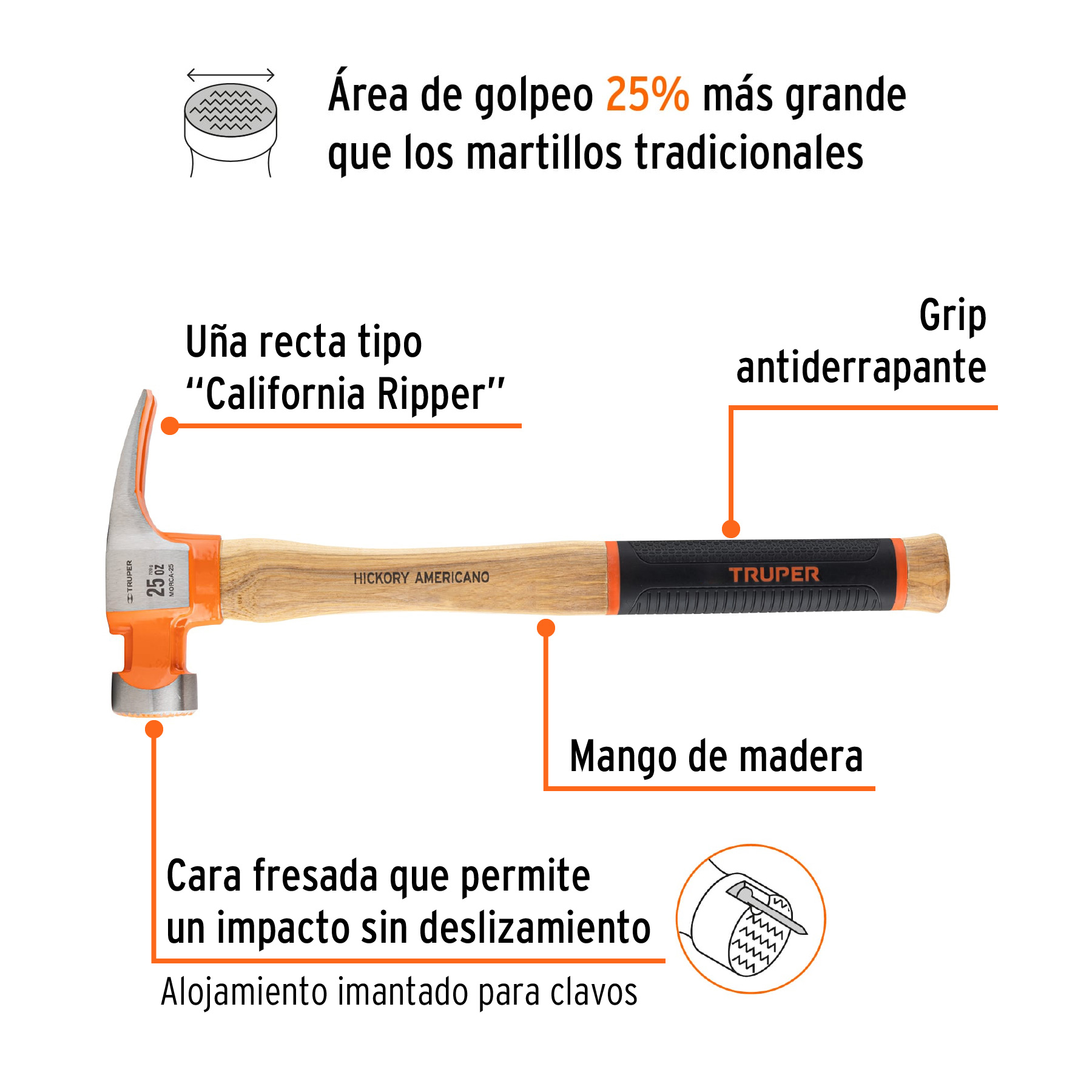 Martillo 25 oz uña recta tipo California Ripper, Truper Grip
