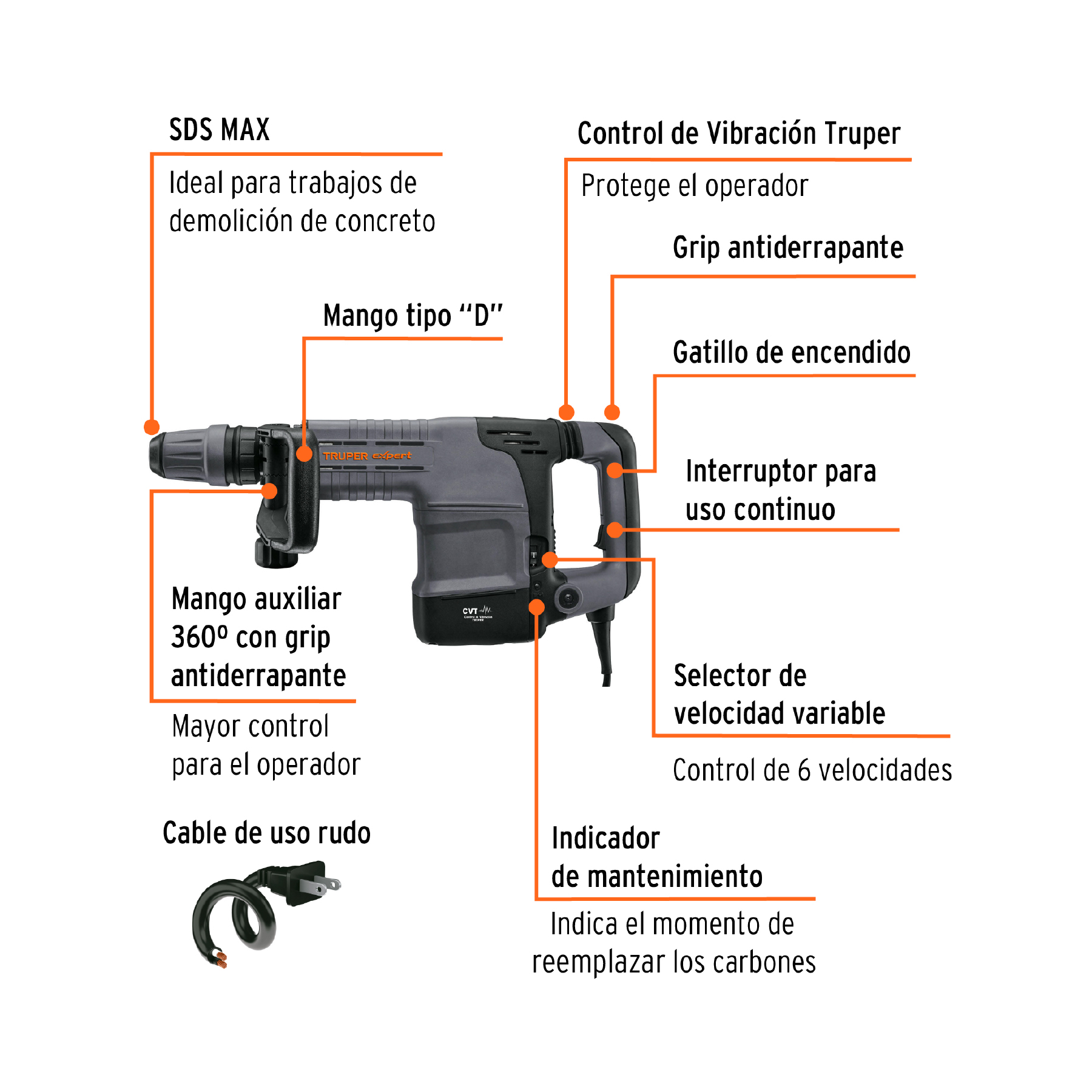 Sé el primero en valorar “Martillo demoledor SDS Max 10kg, 25J, 1500W, TRUPER EXPERT” Cancelar la respuesta