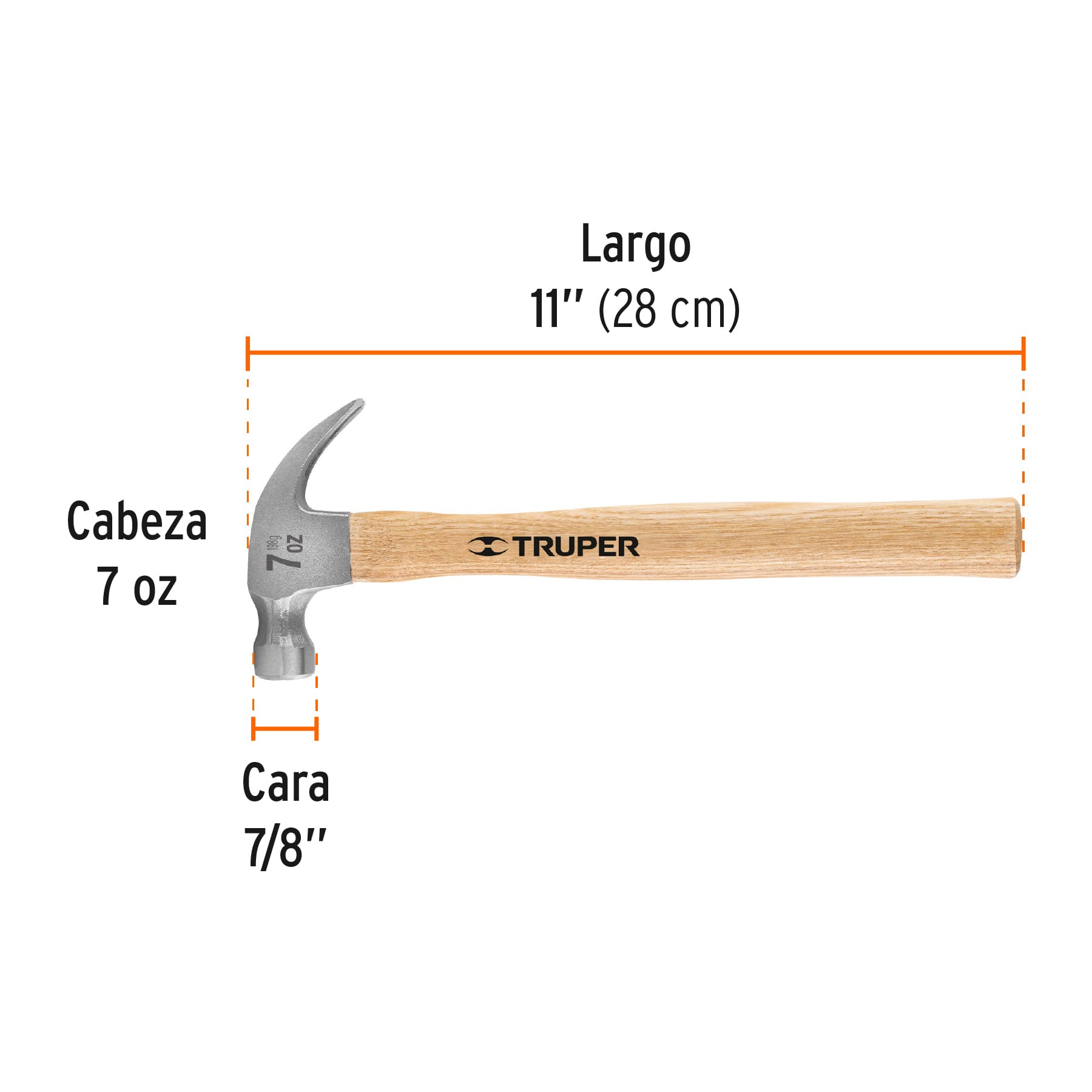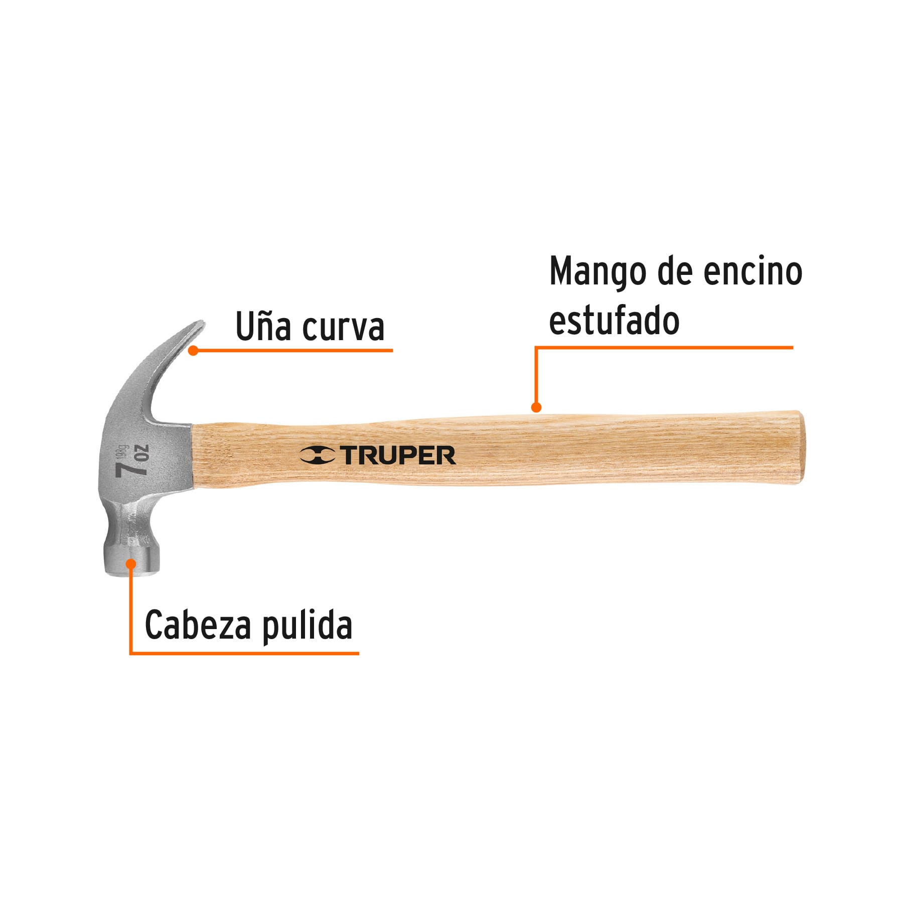 Martillo pulido, 7 oz, uña curva, mango madera, TRUPER
