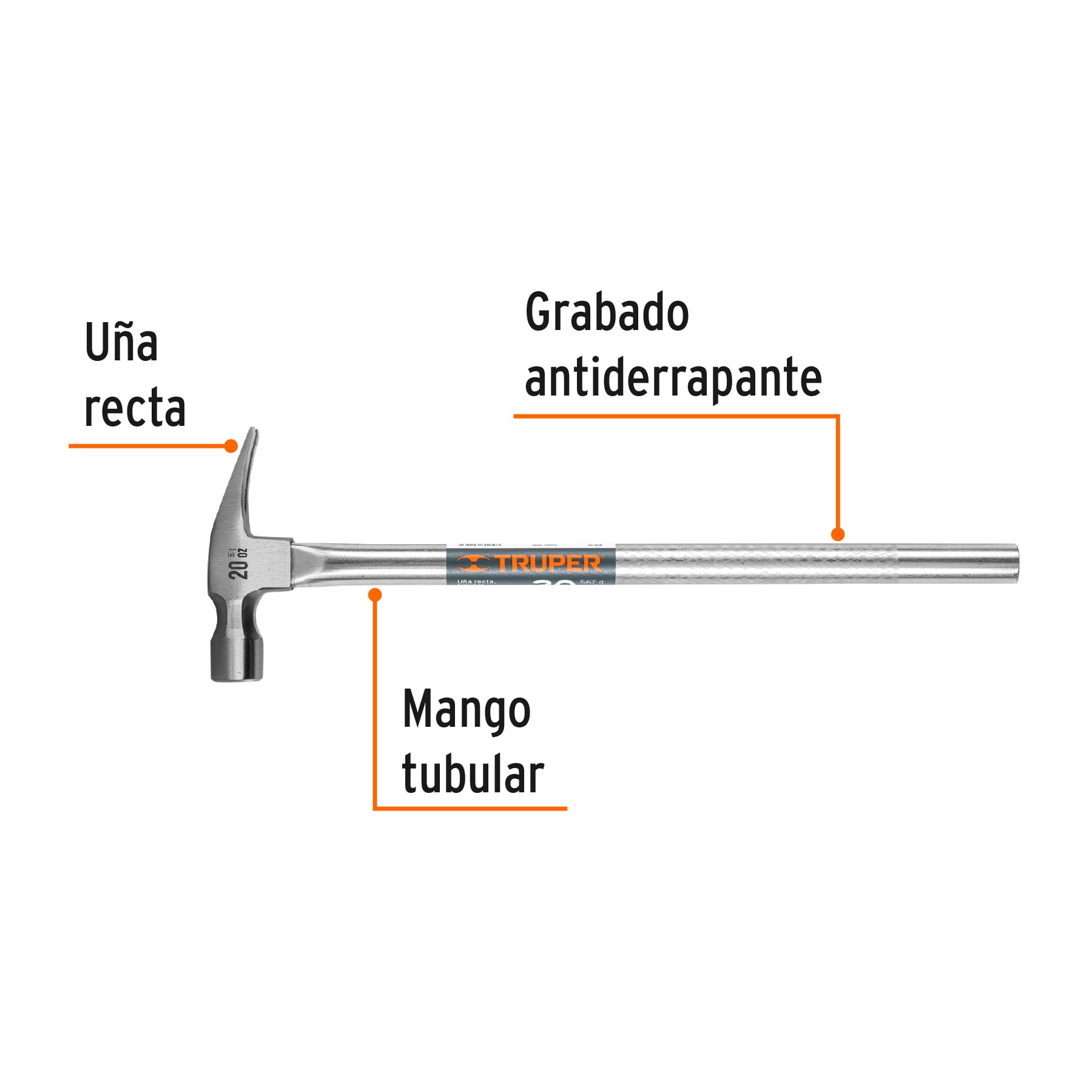 Martillo tubular pulido 20 oz uña recta, Truper