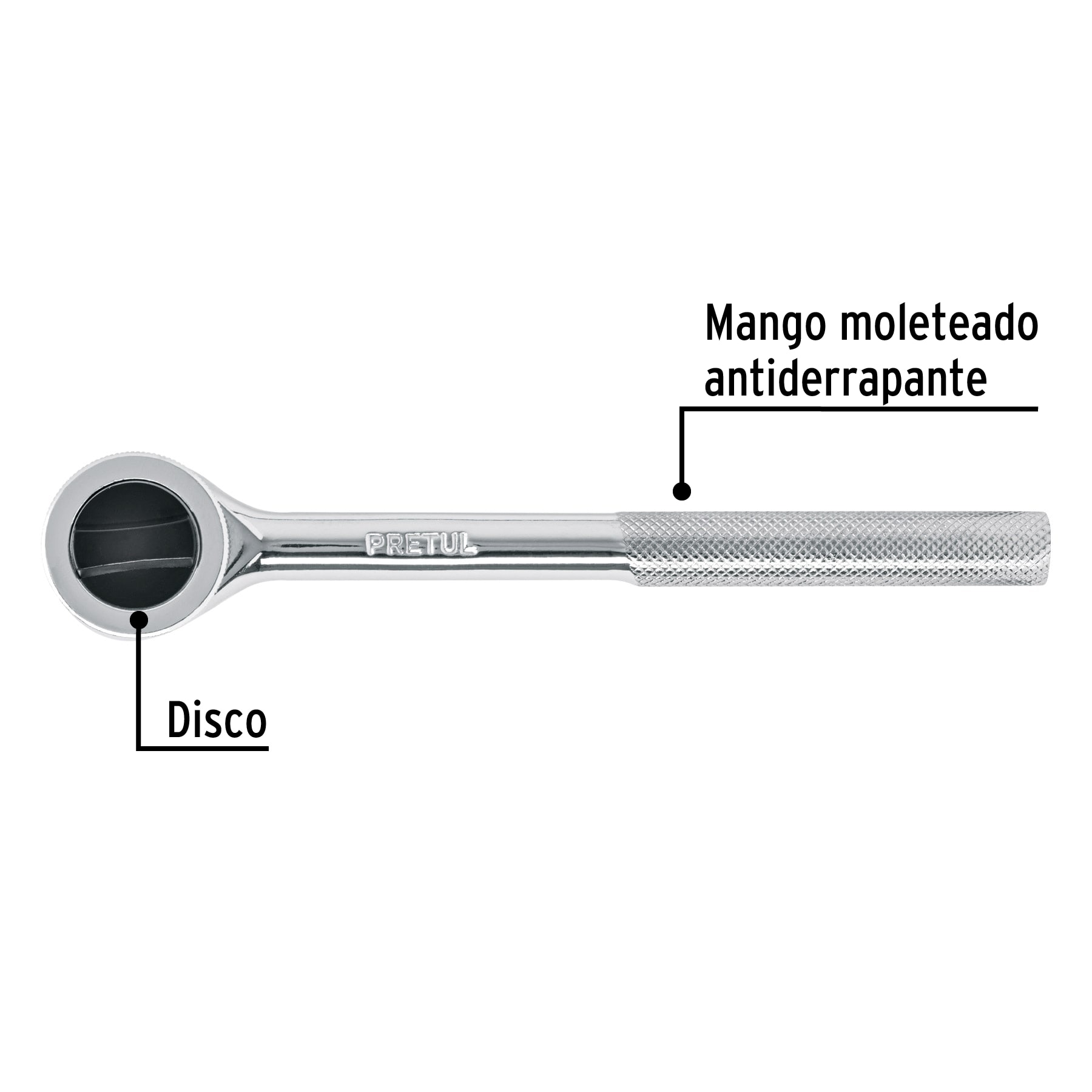 Matraca cuadro 3/8′ cabeza redonda con disco, Pretul