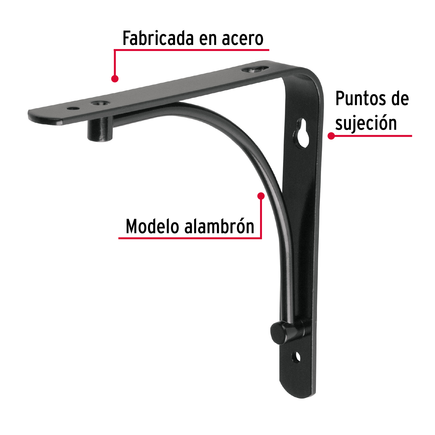 Ménsula reforzada negra 6 x 6′, diseño alambrón, FIERO