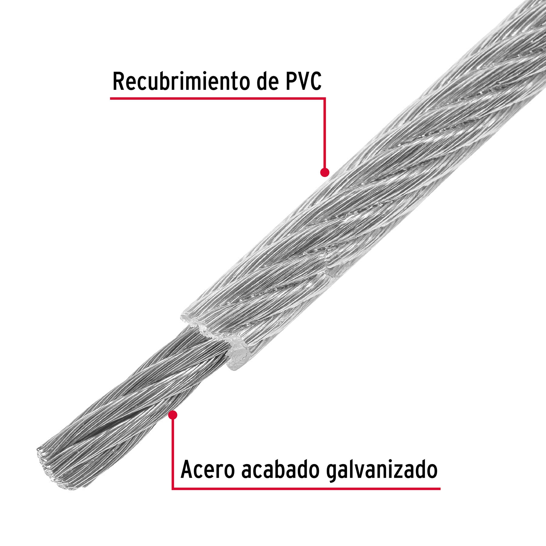 Metro cable flexible 1/8′ acero 7×19 recubierto PVC, 75 m