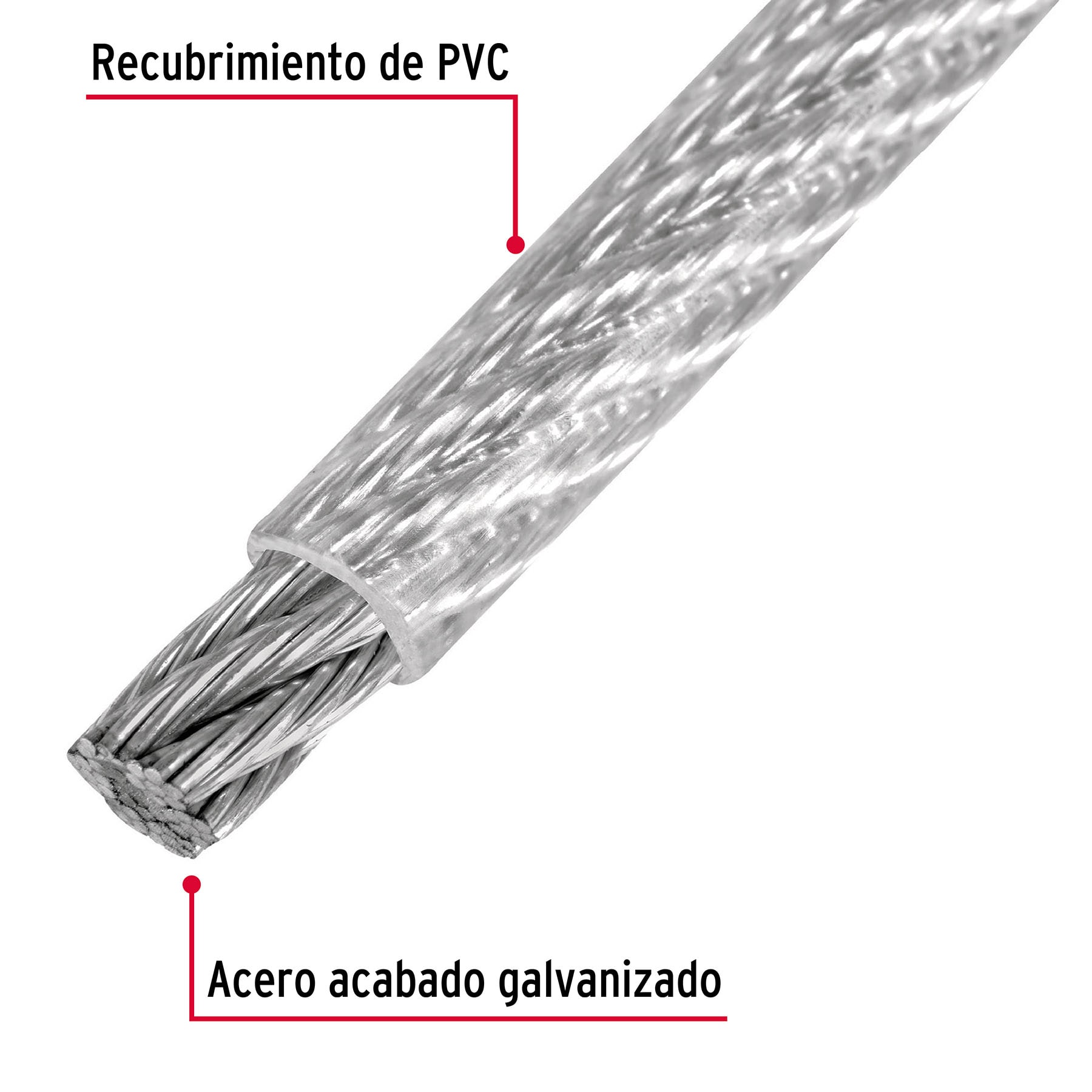 Metro de cable rígido 3/32′ acero 7×7 recubierto PVC, 75 m