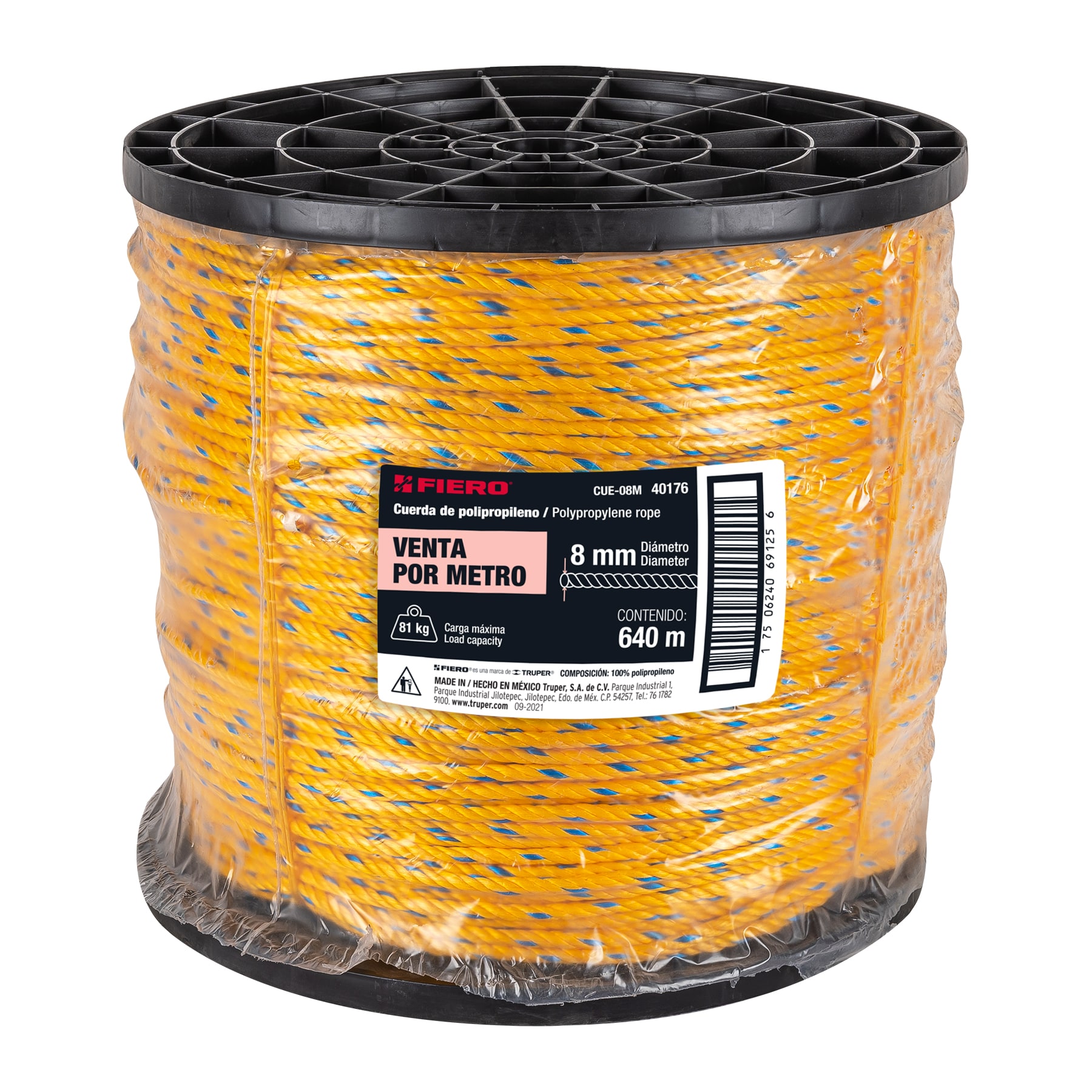 Metro de cuerda amarilla de polipropileno 8mm, carrete 640m