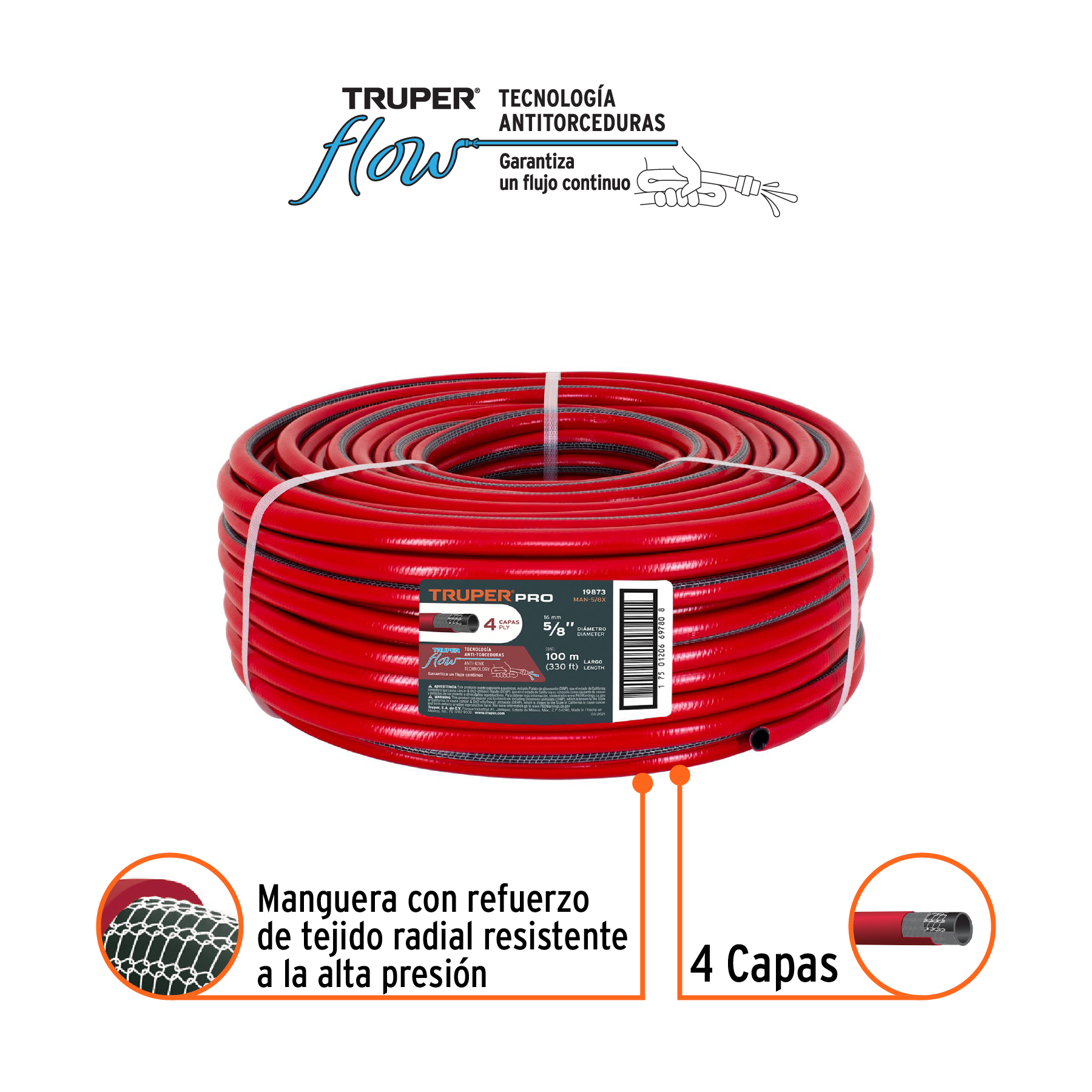 Metro de manguera 5/8′ 4 capas en rollo de 100 m, Truper