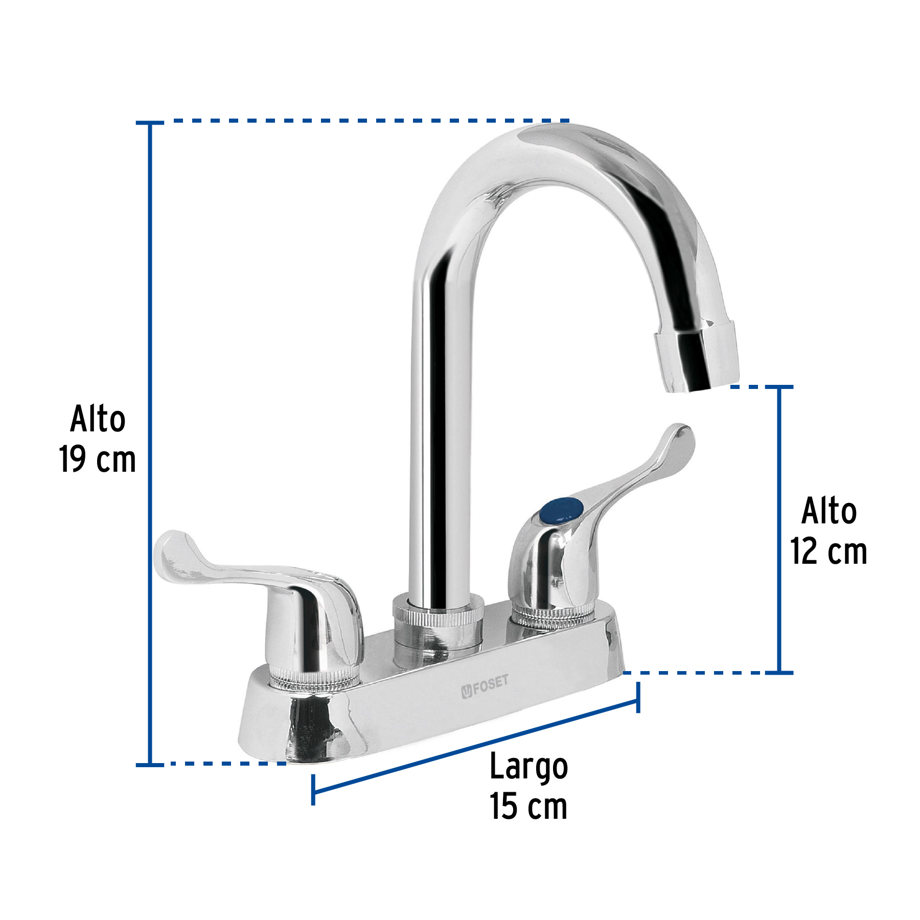 Mezcladora 4′ para lavabo, cuello bar, manerales palanca