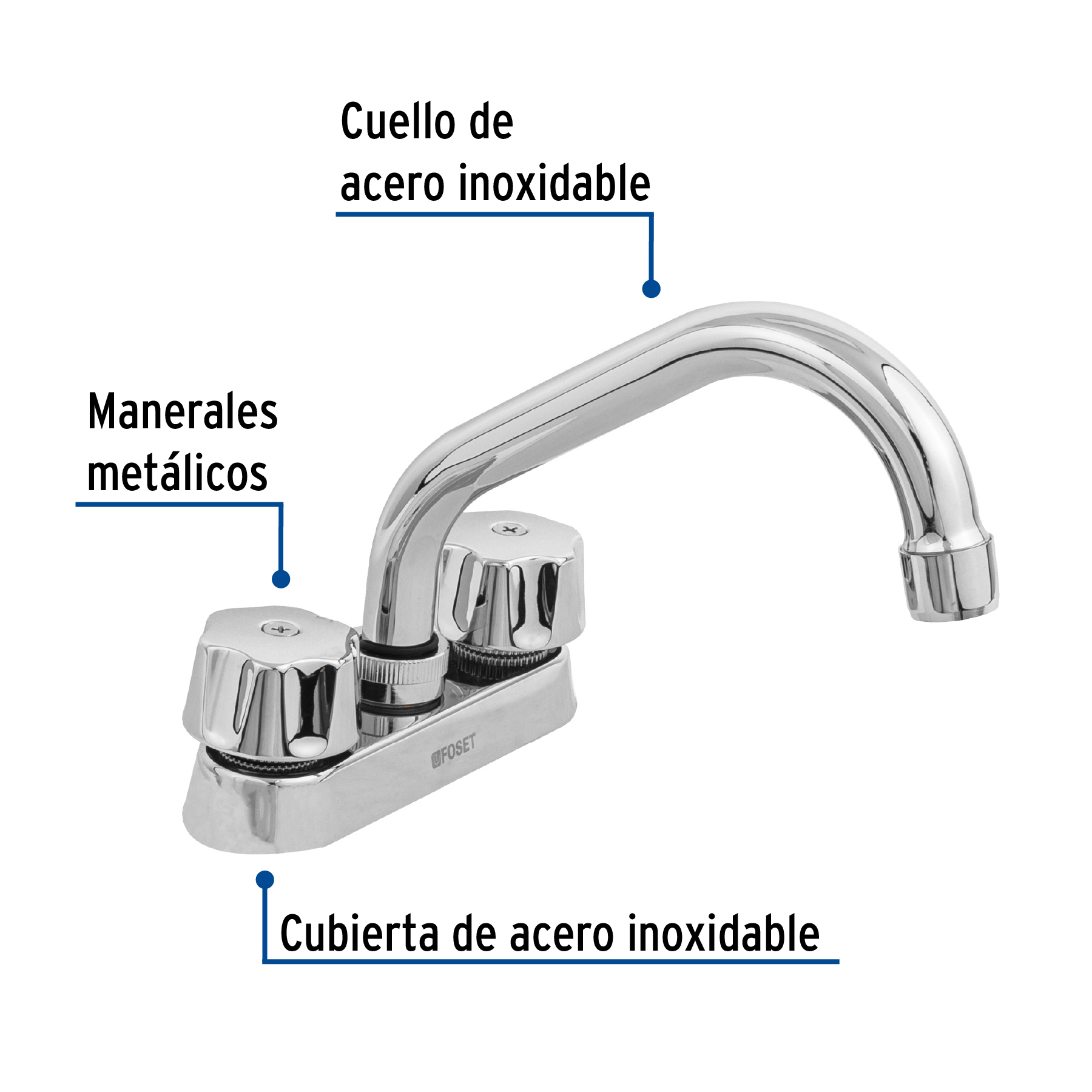 Mezcladora 4′ para lavabo, tubular, cartucho compresión