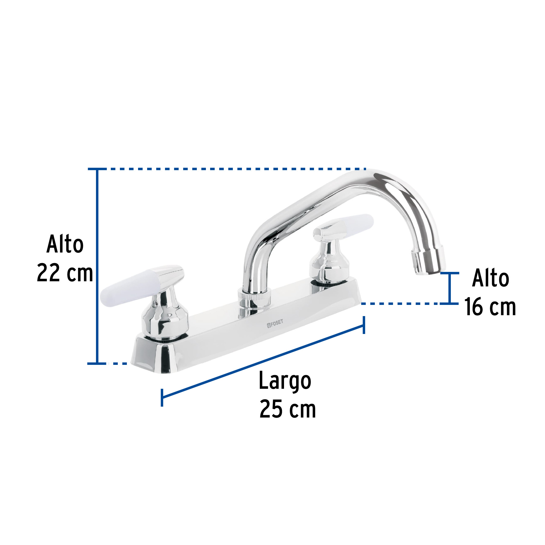 Mezcladora 8′ fregadero cromo, cuello corto, cono, BASIC