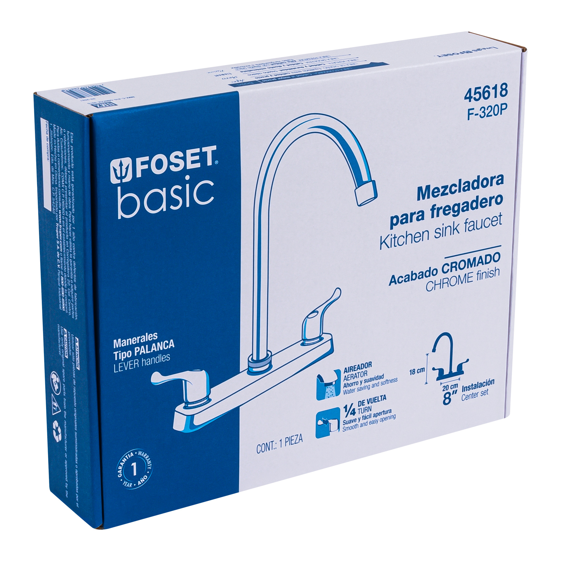 Mezcladora 8′ fregadero cromo, cuello curvo, palanca, BASIC