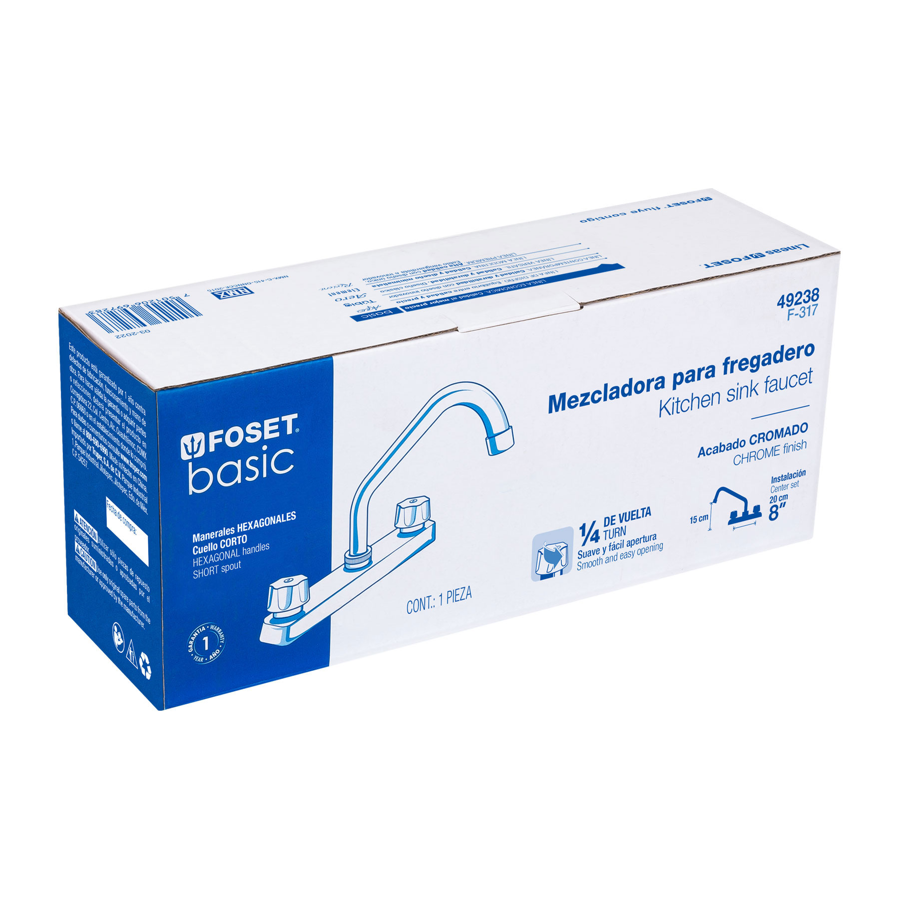 Mezcladora 8′ fregadero cromo, cuello corto,hexagonal, BASIC
