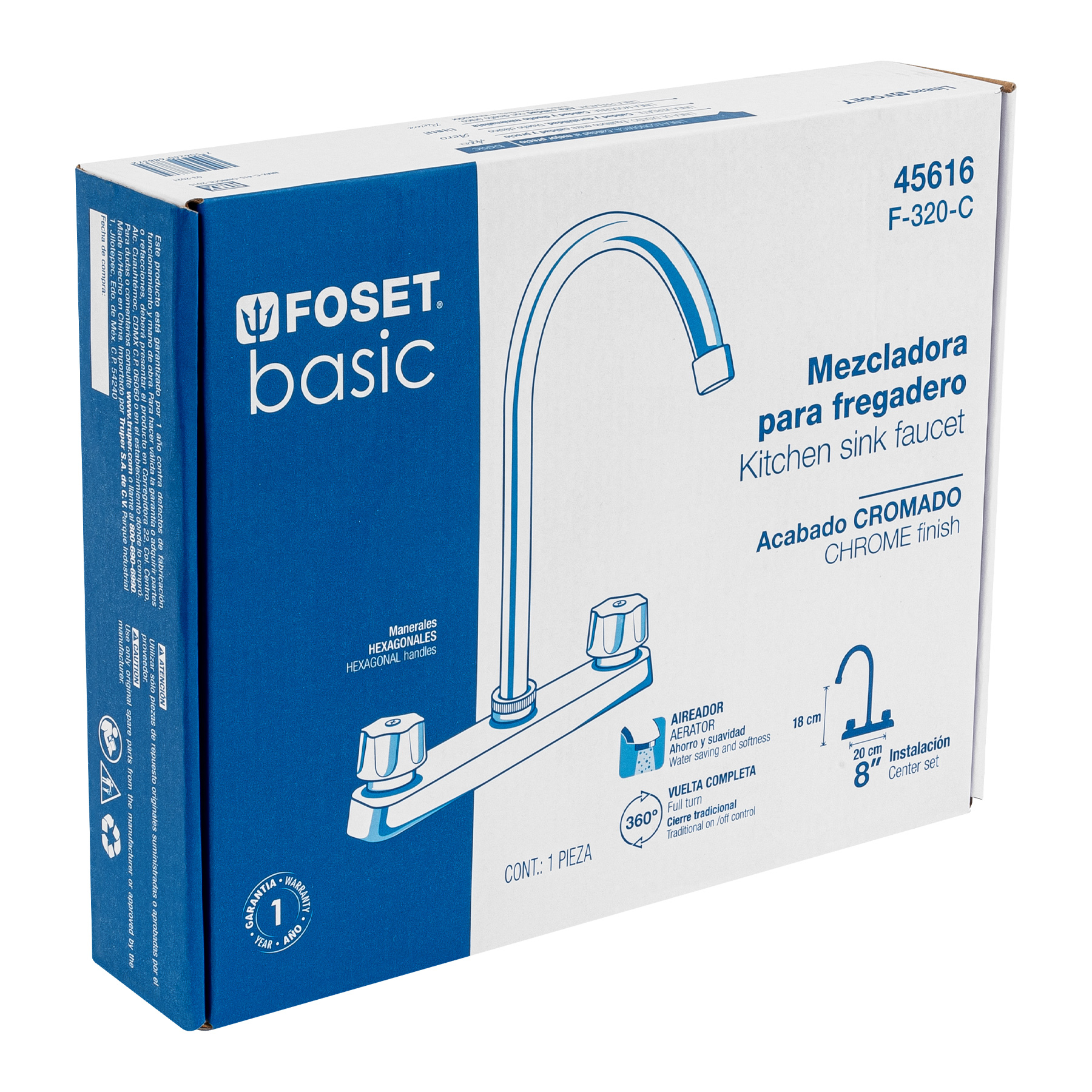 Mezcladora 8′ fregadero cromo, cuello curvo,compresión,BASIC