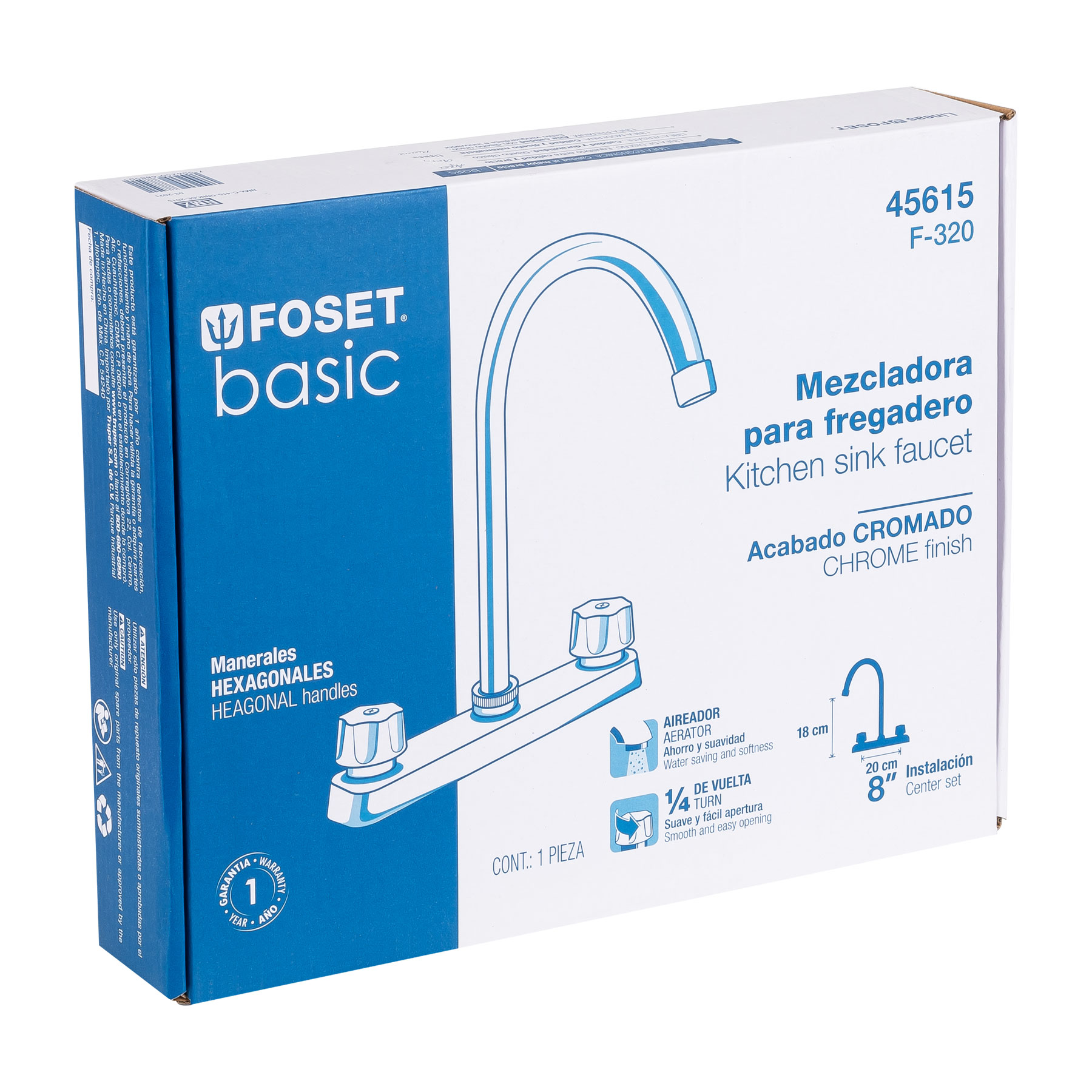 Mezcladora 8′ fregadero cromo, cuello curvo,hexagonal, BASIC