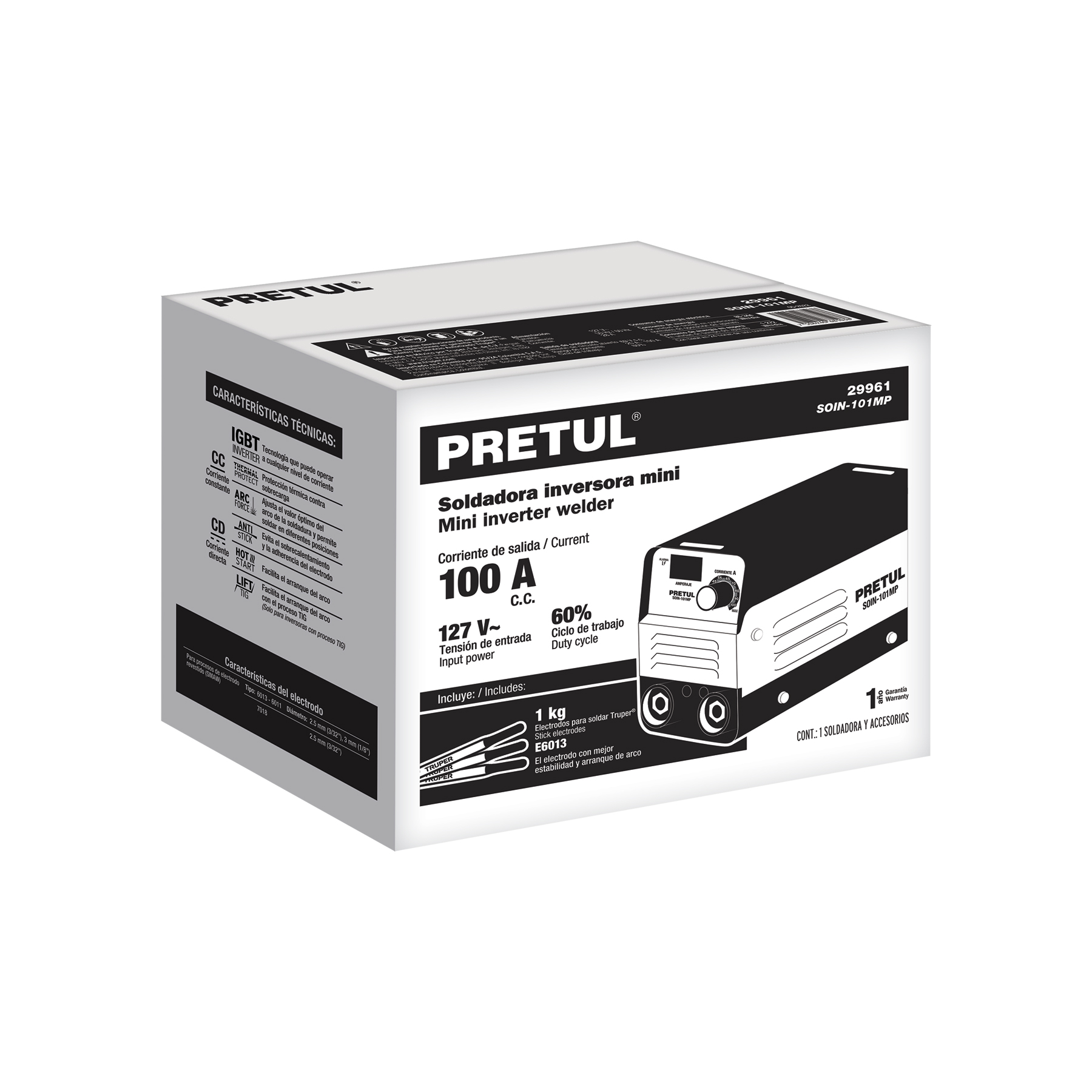 Mini soldadora inversora 100A, 127V, PRETUL