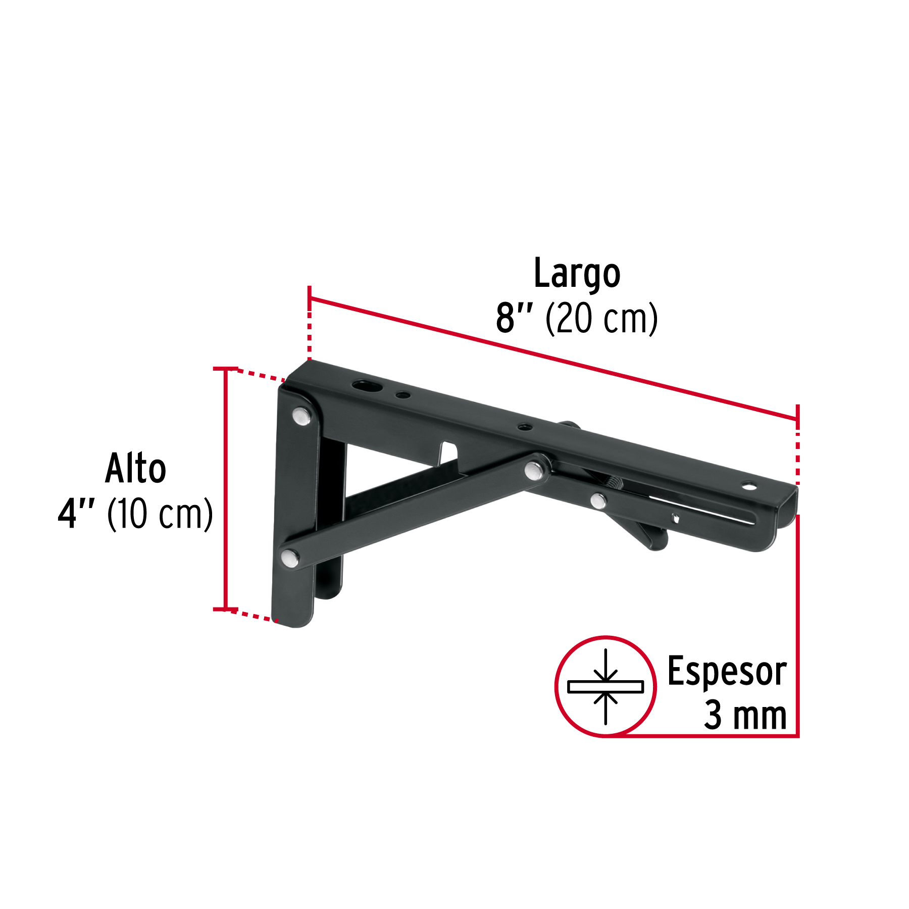 Ménsula plegable de acero negra 4′ x 8′, FIERO