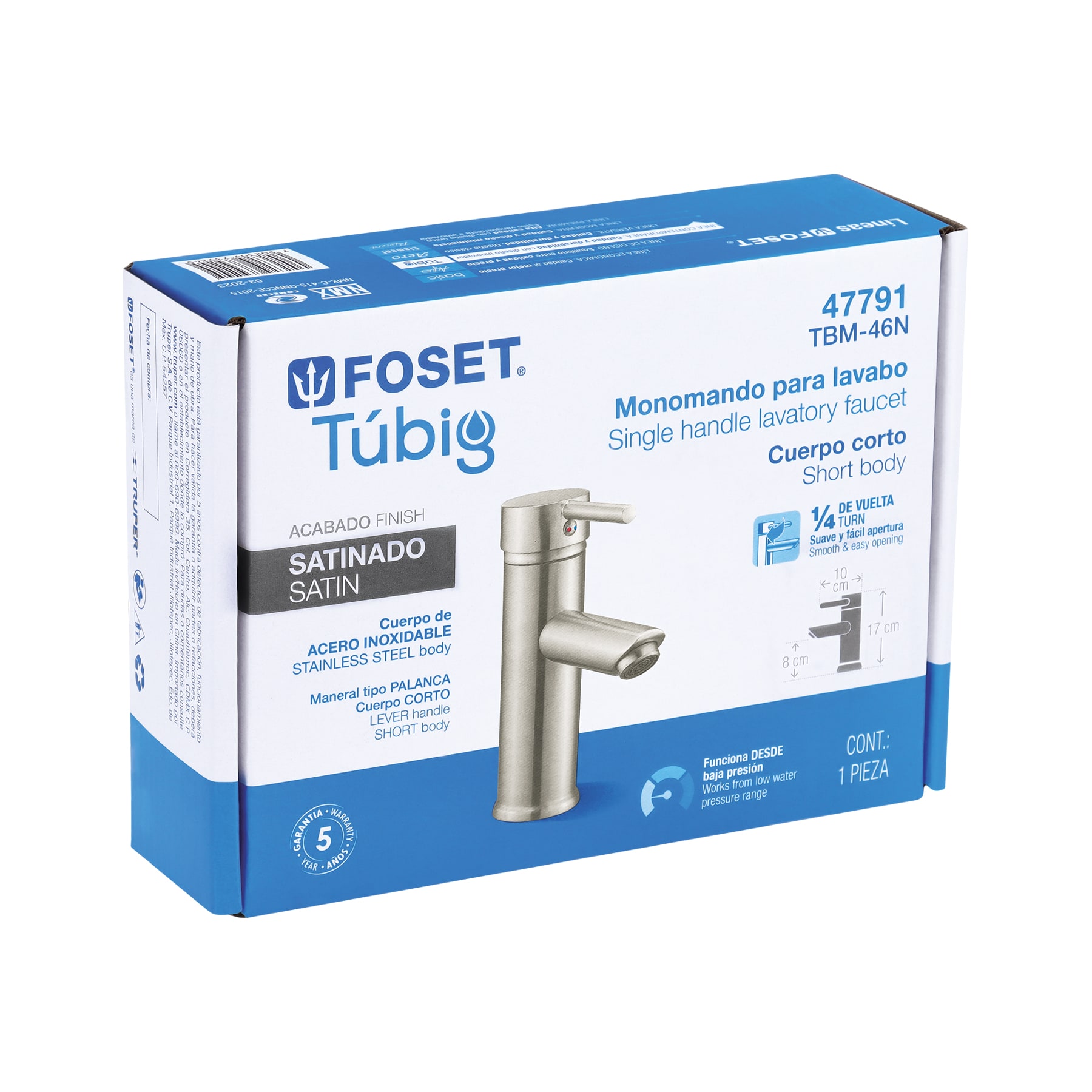 Monomando corto satín para lavabo, Foset Tubig
