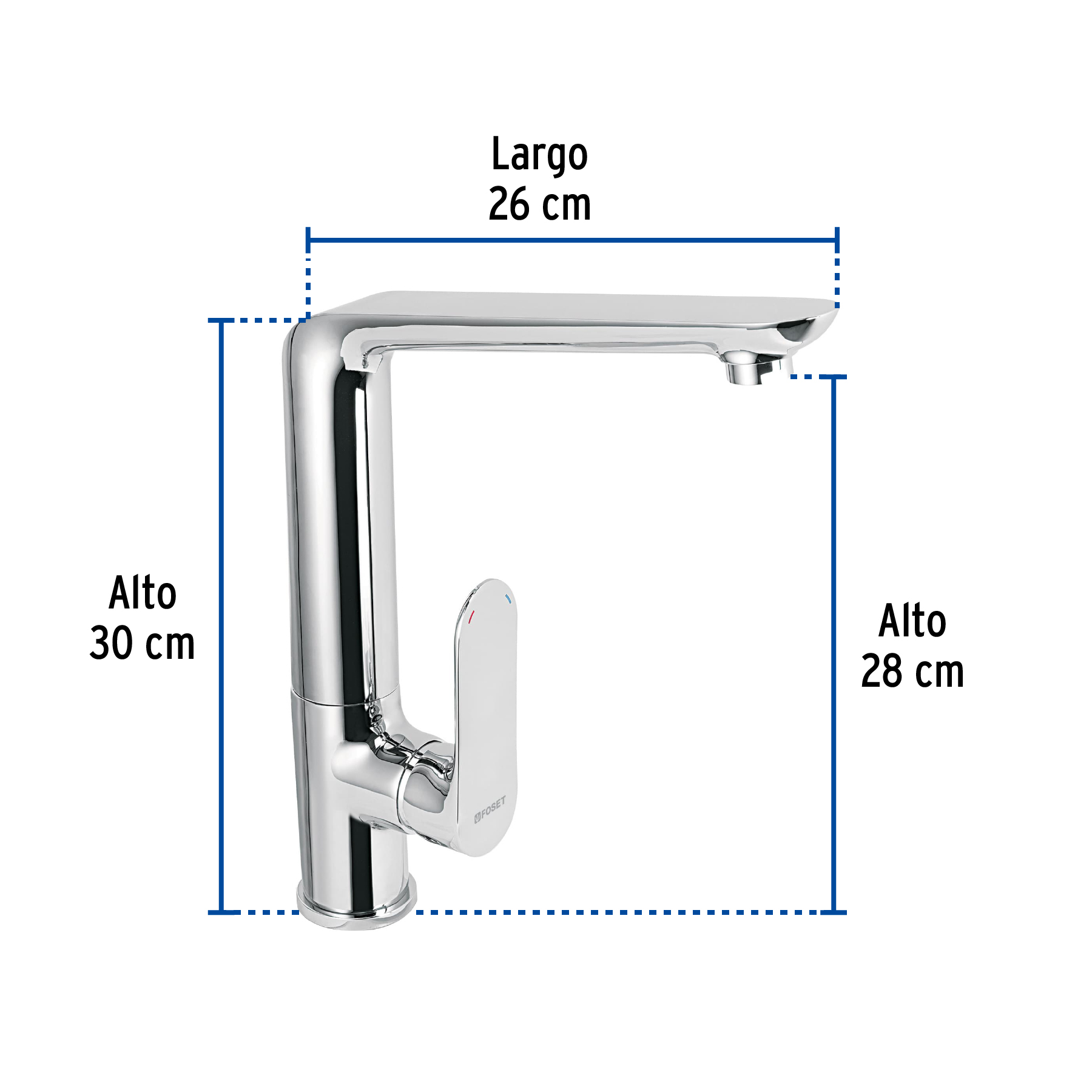 Monomando cuello alto para fregadero, cromo, FOSET RIVIERA