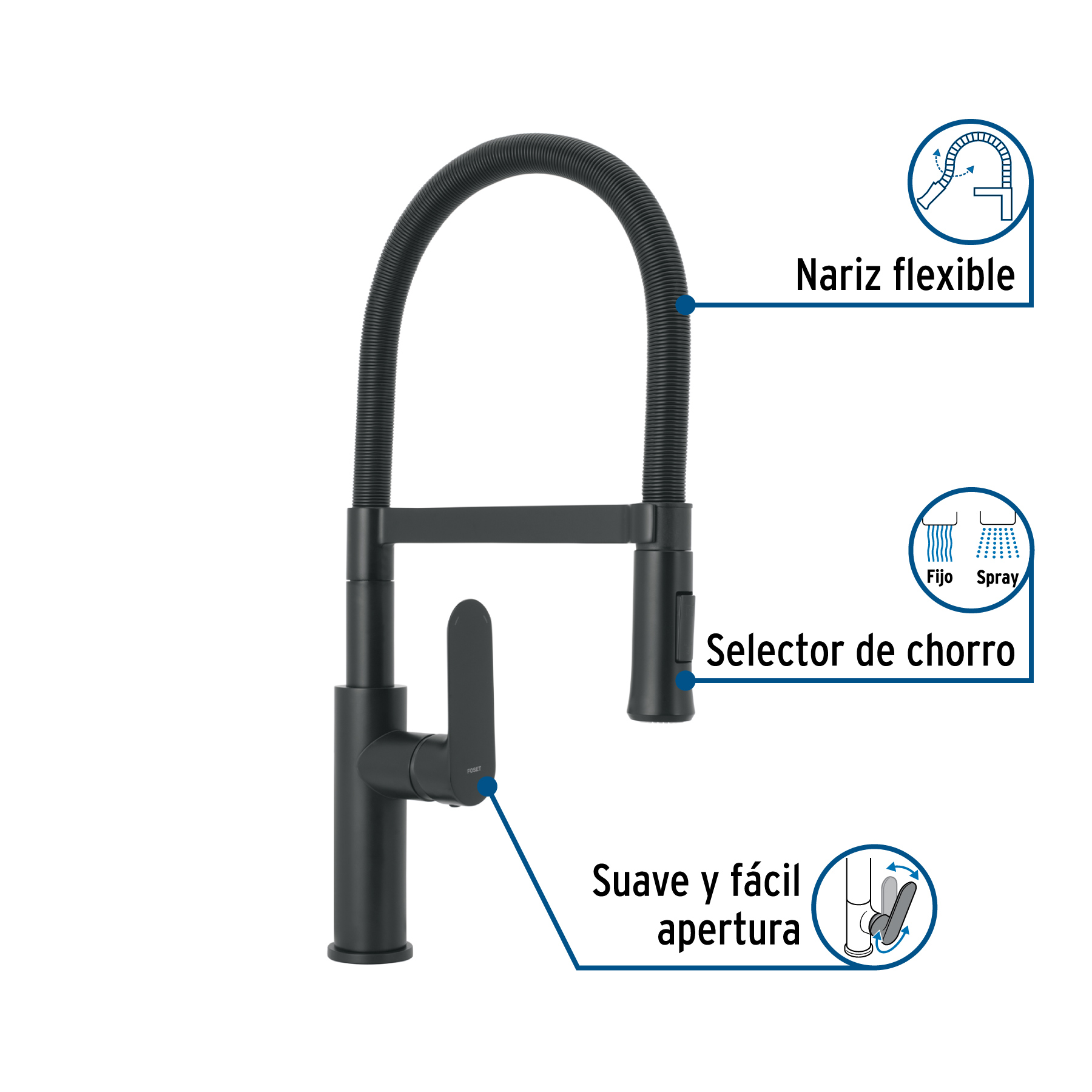 Monomando nariz flexible para fregadero, negro,FOSET RIVIERA