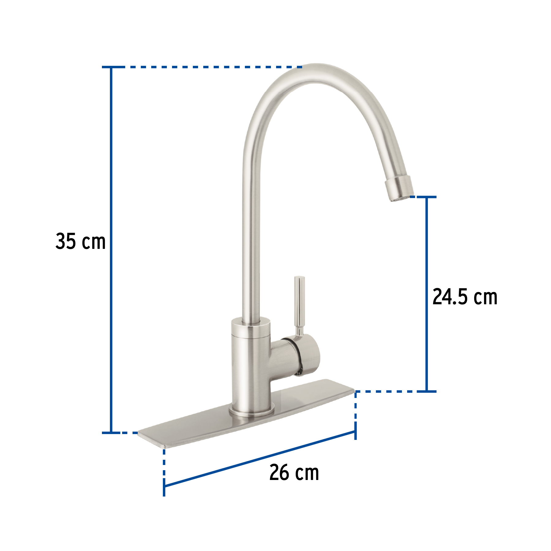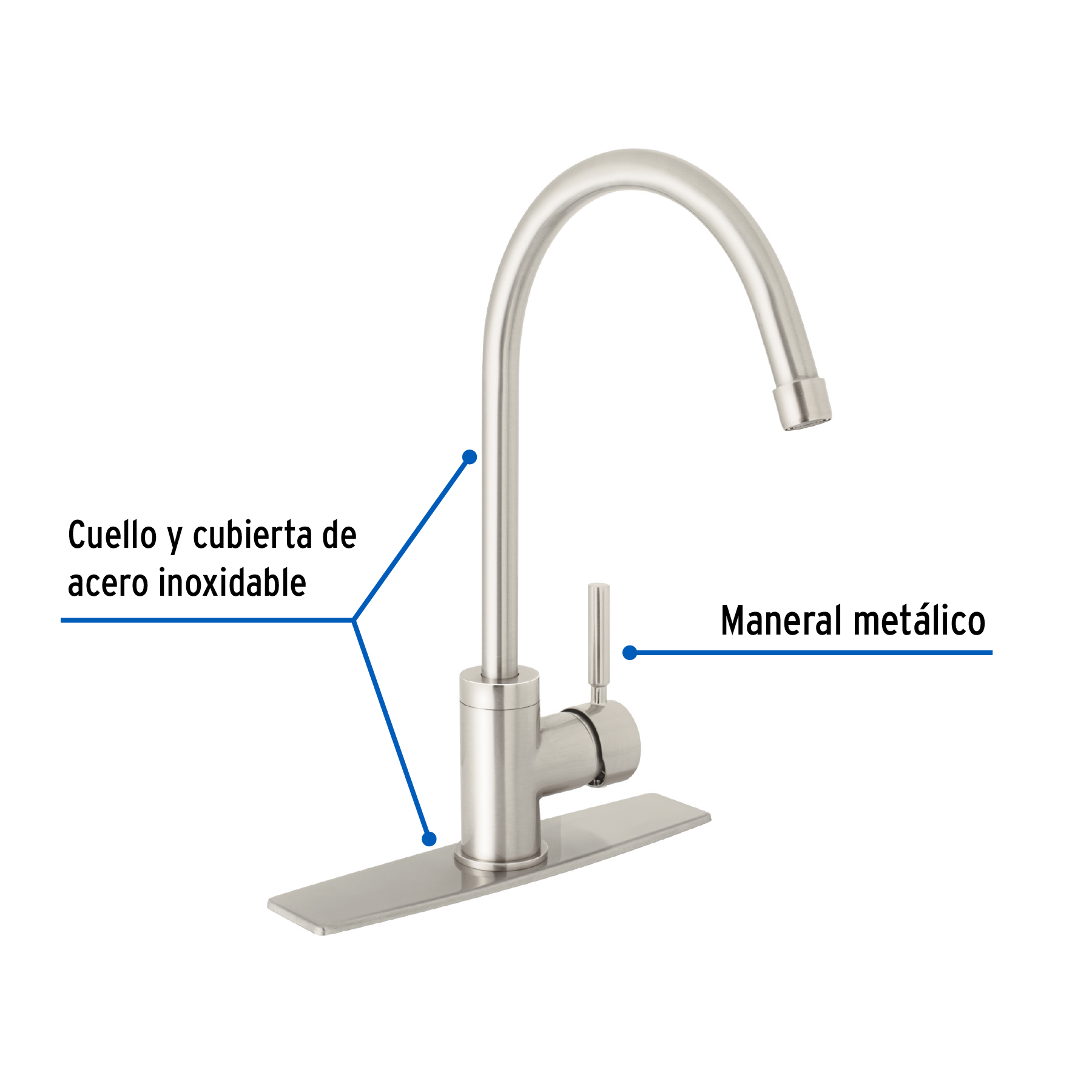 Monomando para fregadero, cuello alto, satín, Foset Tubig