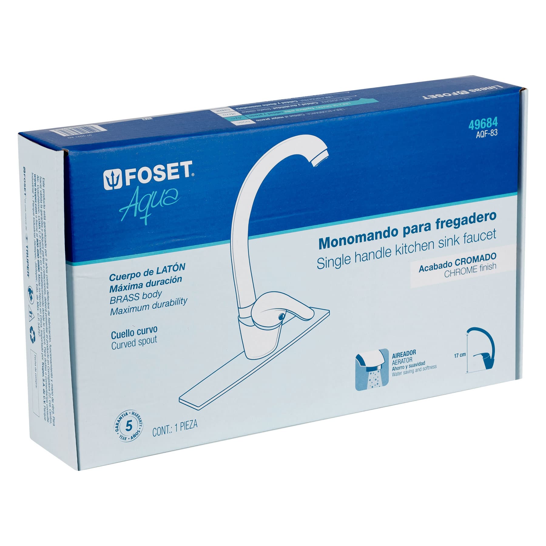 Monomando fregadero cromo, cuello curvo, AQUA