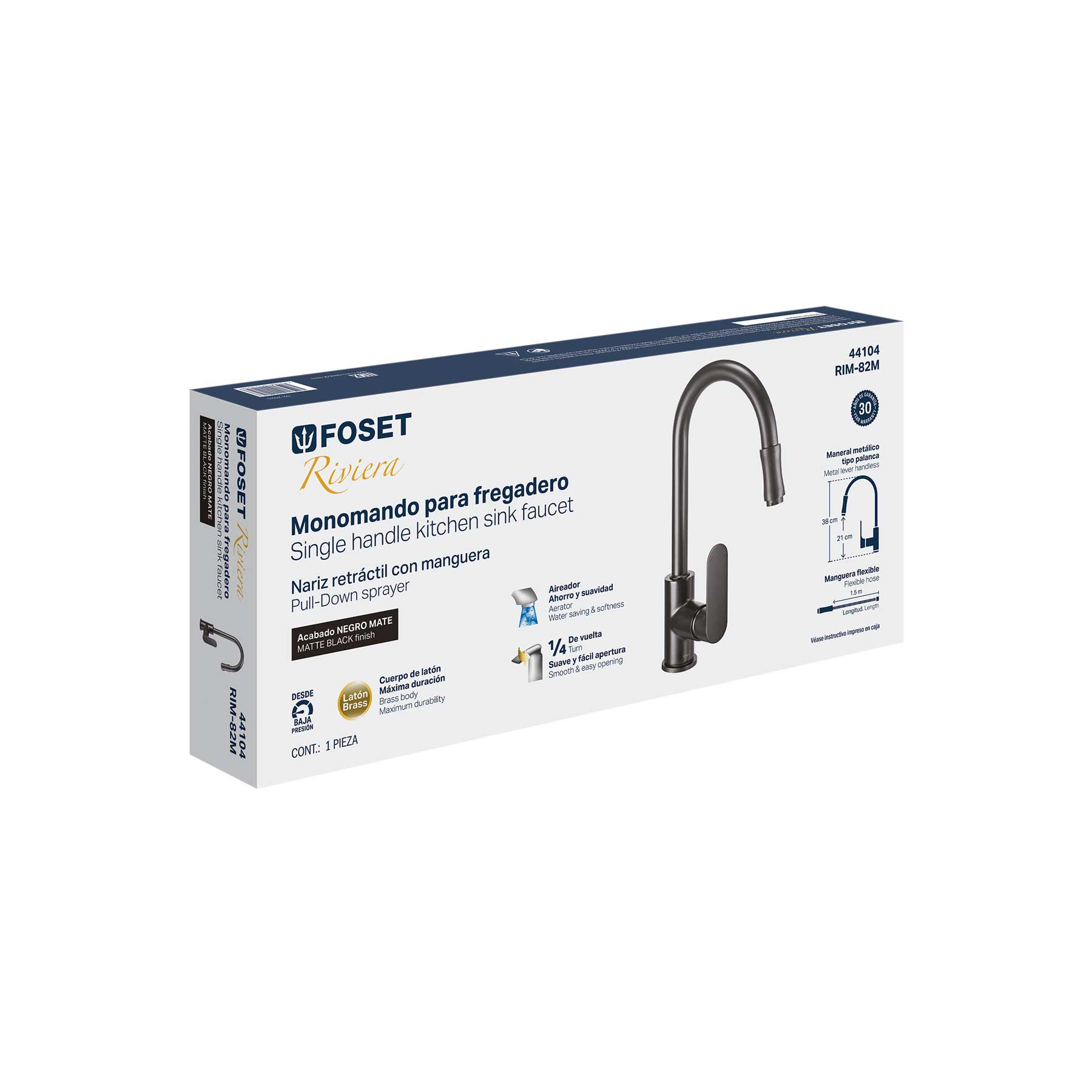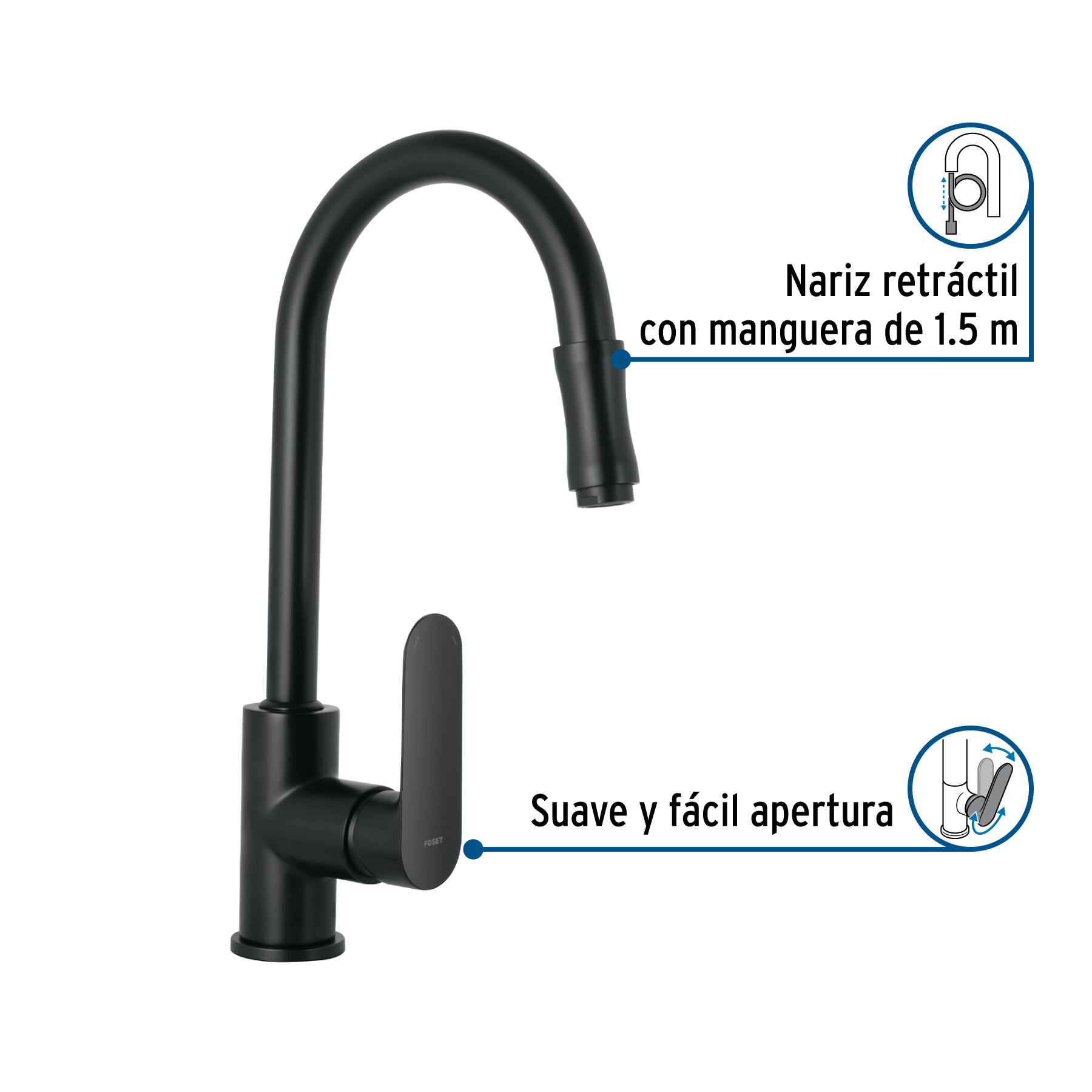 Monomando retráctil para fregadero, negro, FOSET RIVIERA