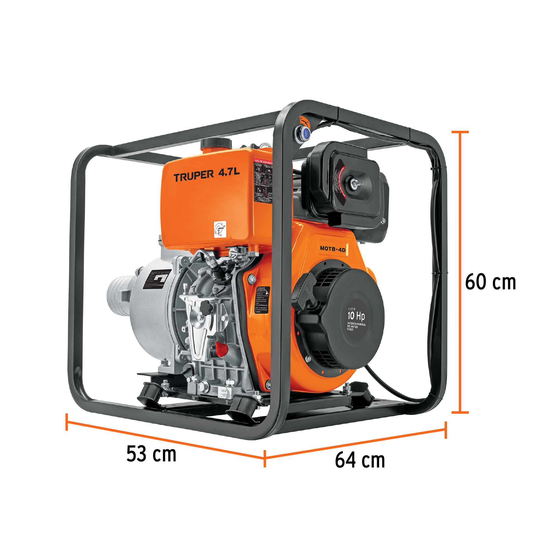 Motobomba autocebante 4’x4′, diesel 10HP, agrícola, TRUPER