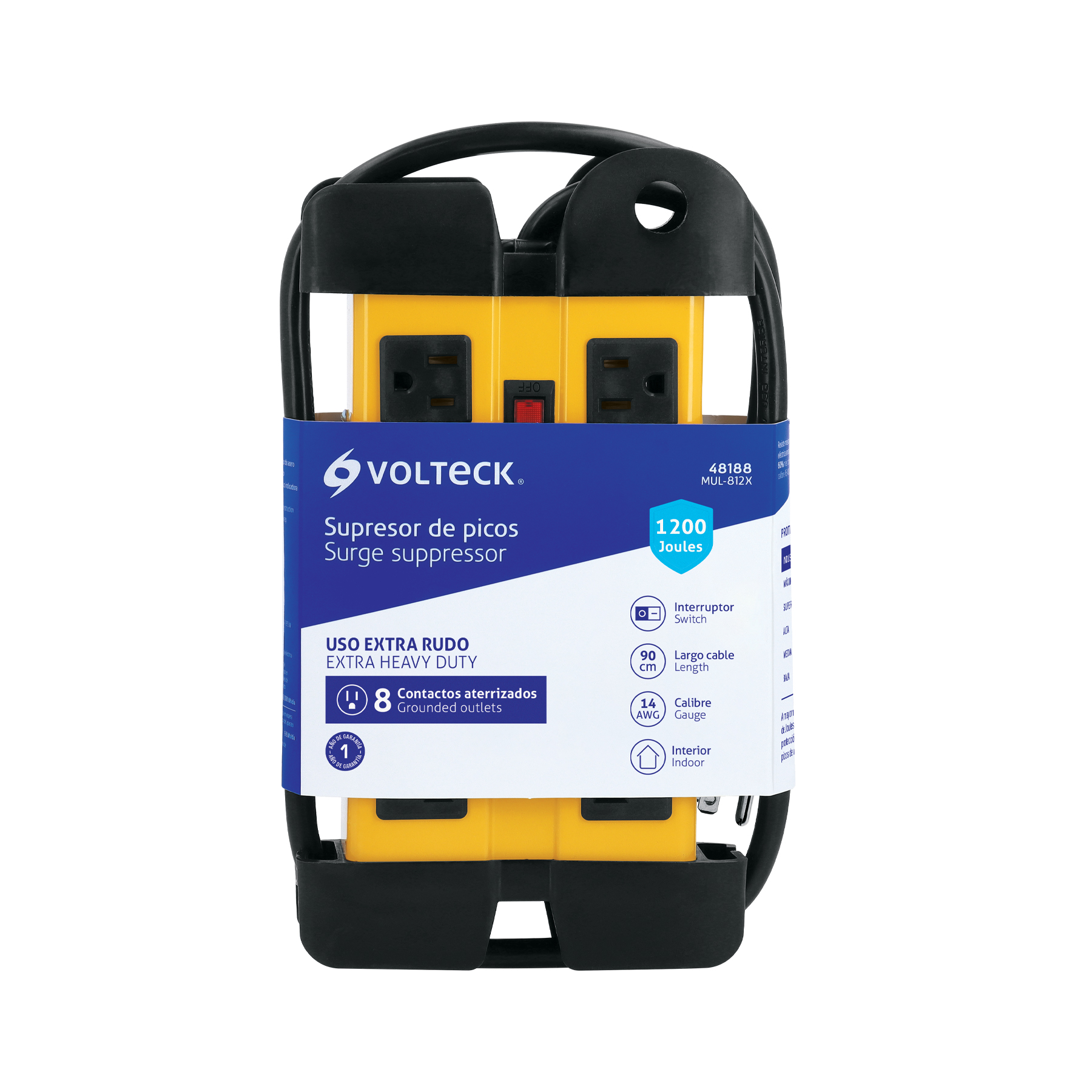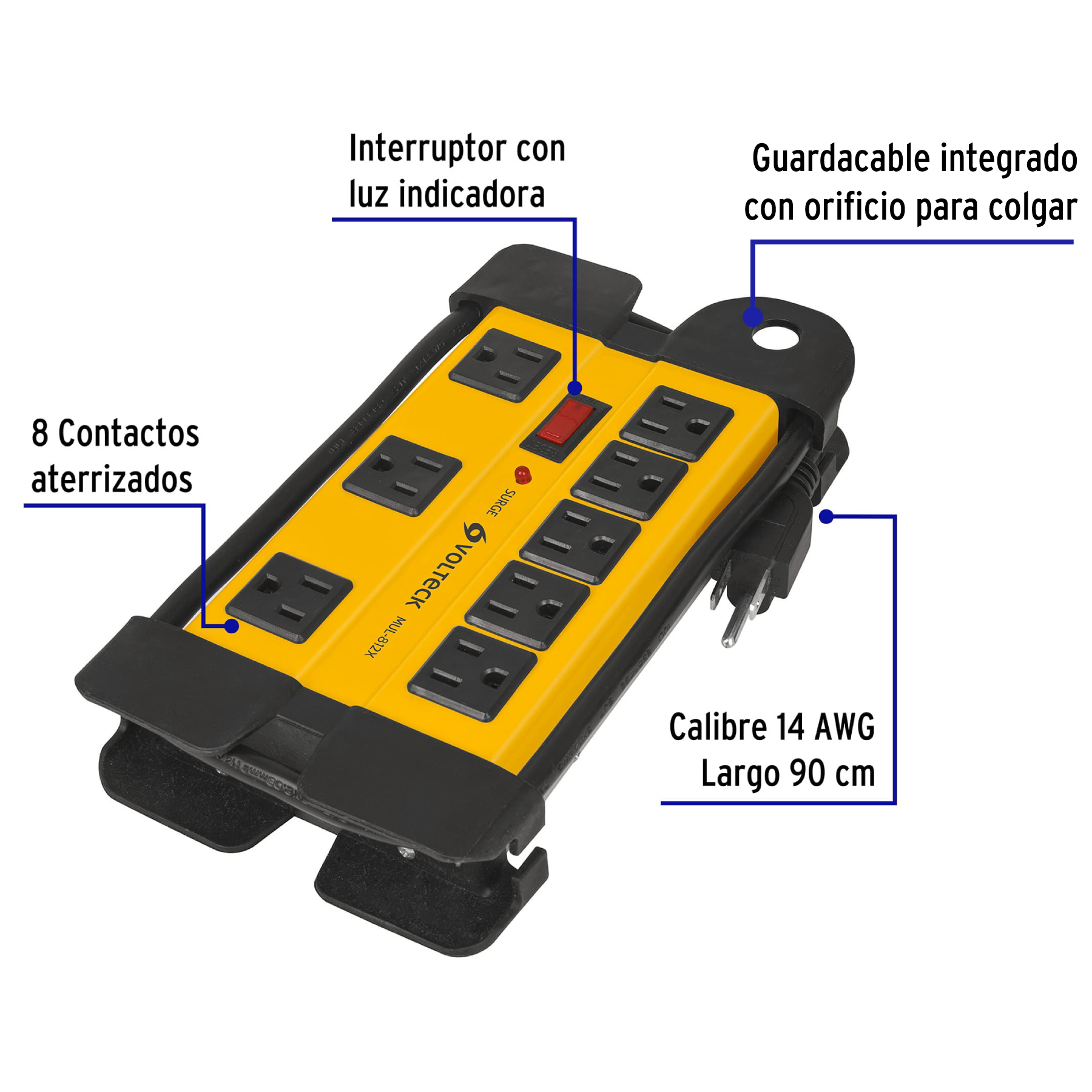 Multicontacto 14 AWG industrial supresor de picos 8 entradas