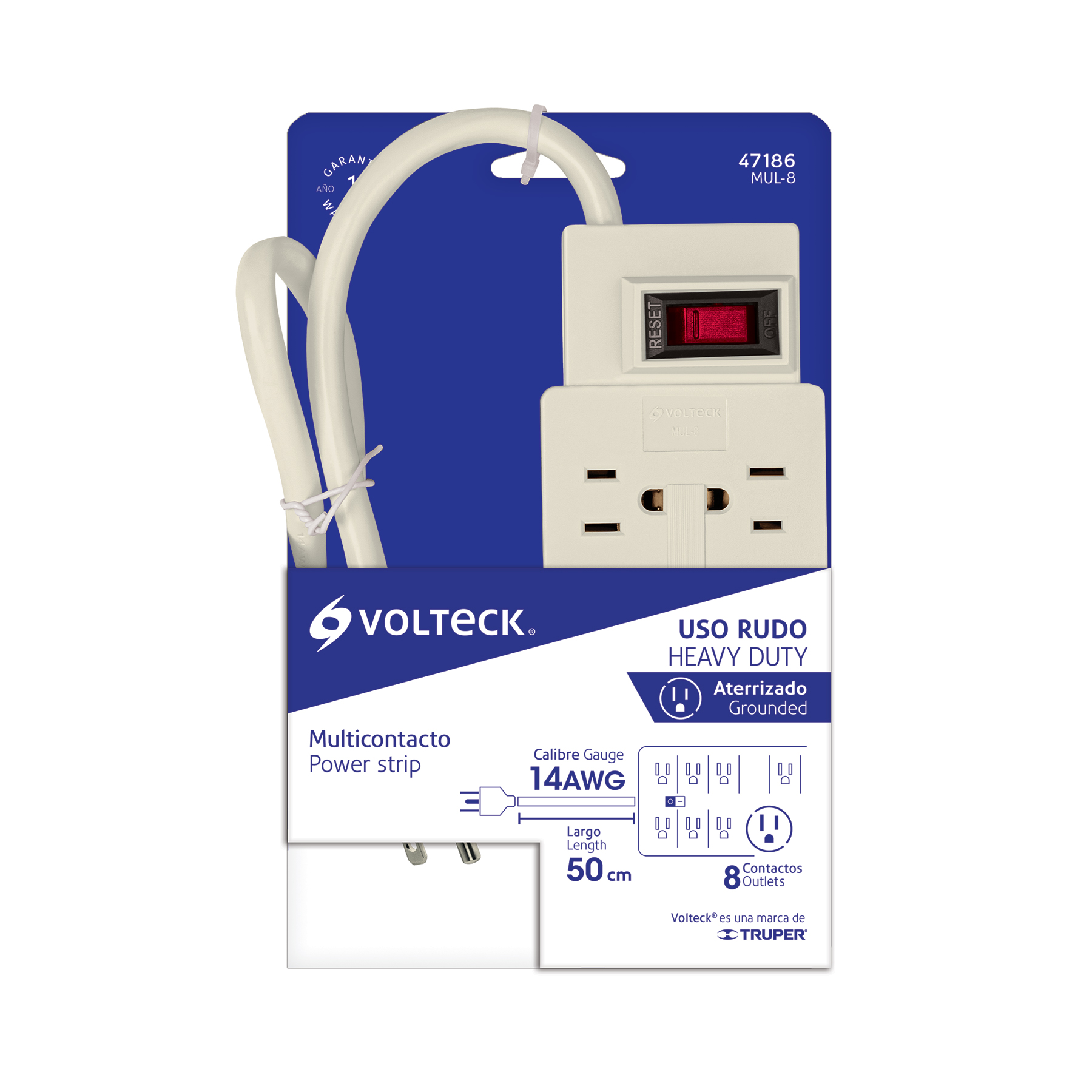 Multicontacto 14 AWG uso rudo con 8 entradas, Volteck