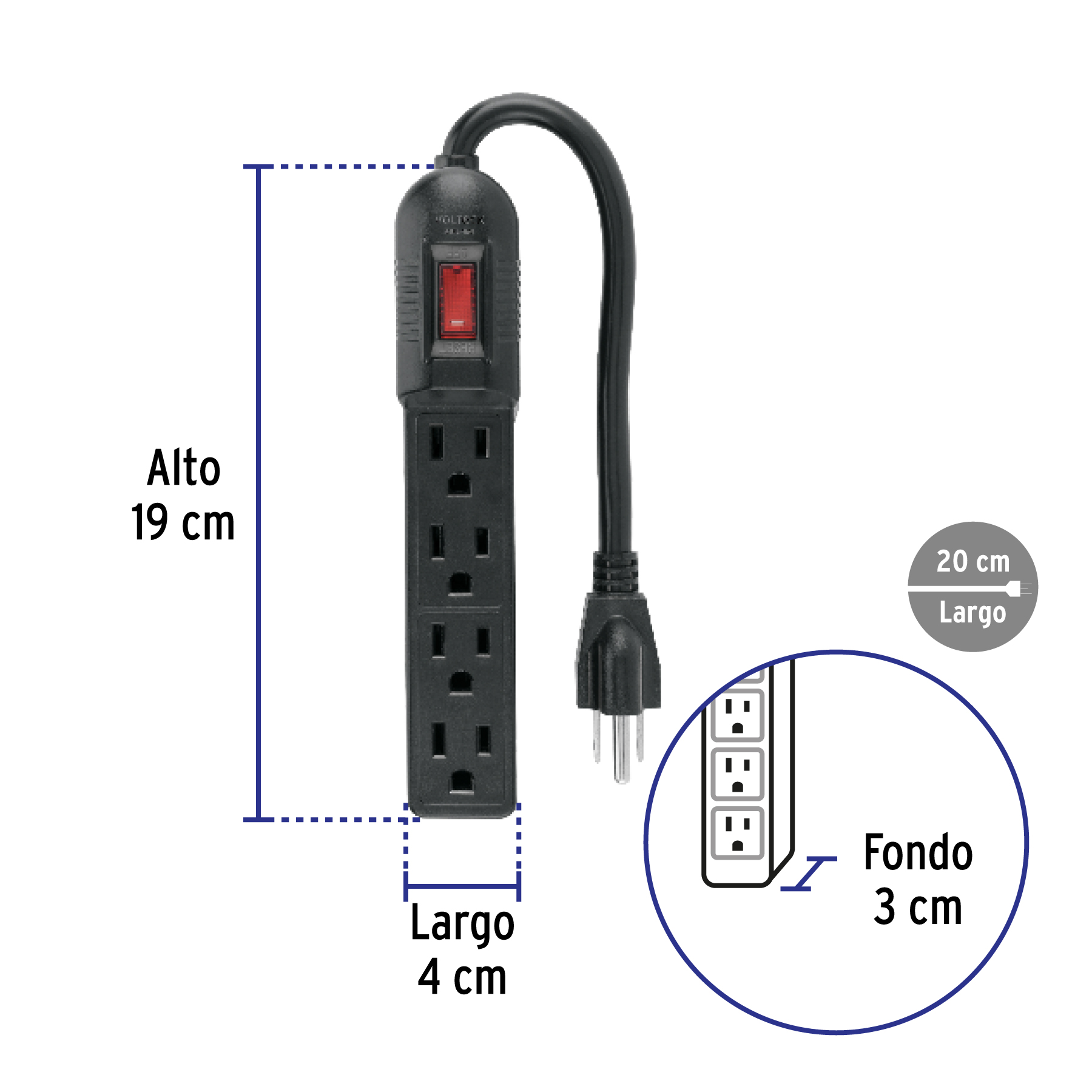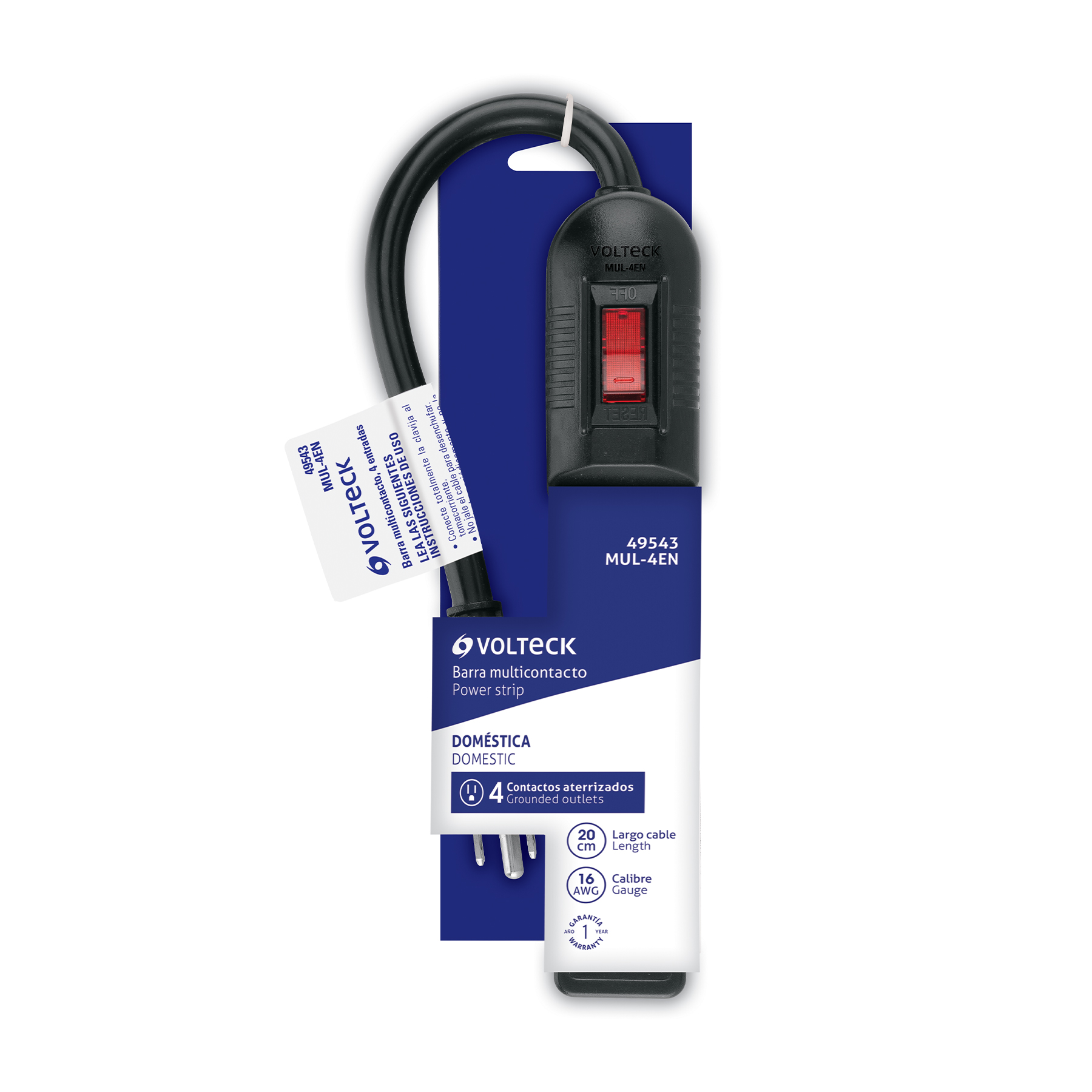 Multicontacto económico 4 entradas, negro, VOLTECK