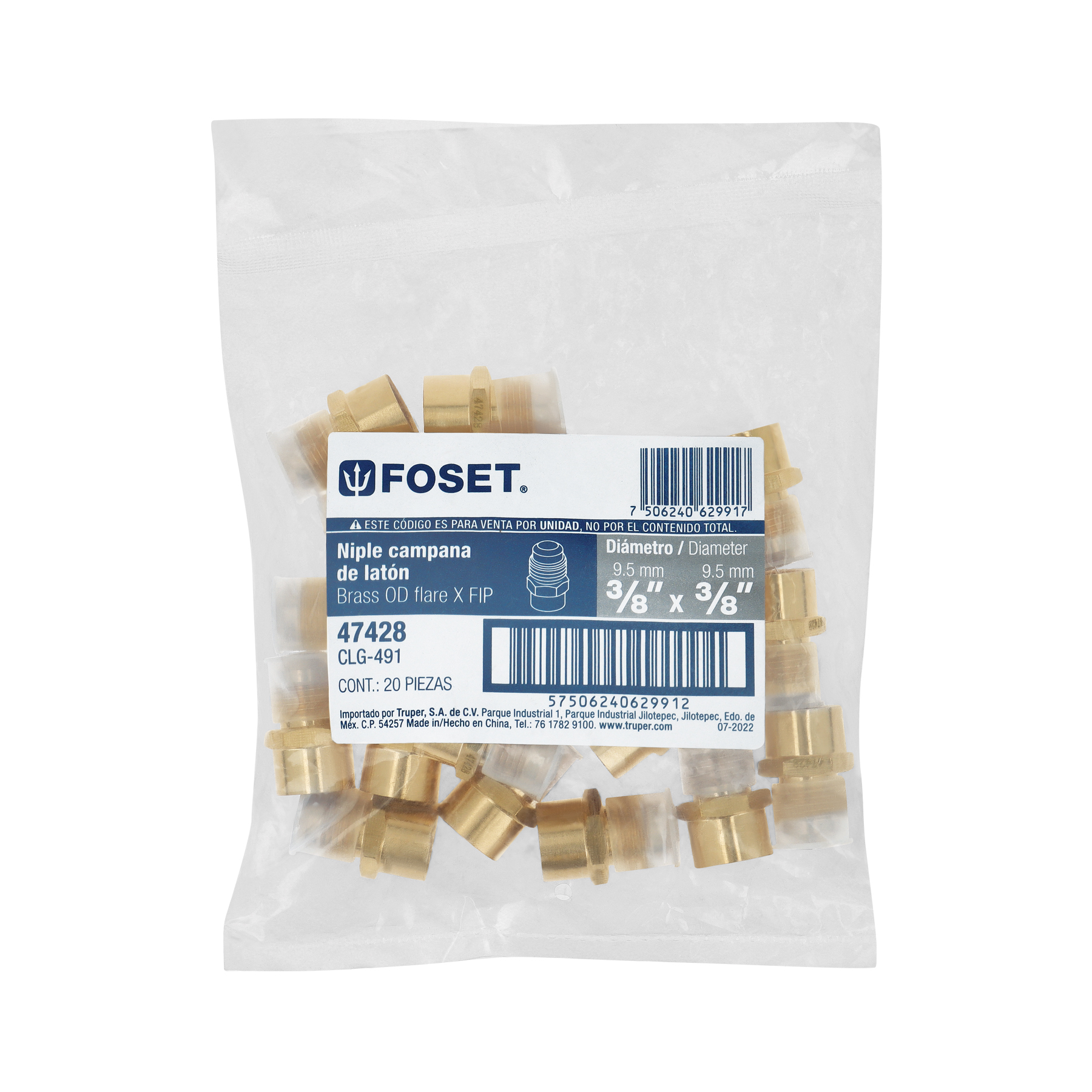 Niple campana de latón de 3/8′ X 3/8′, Foset
