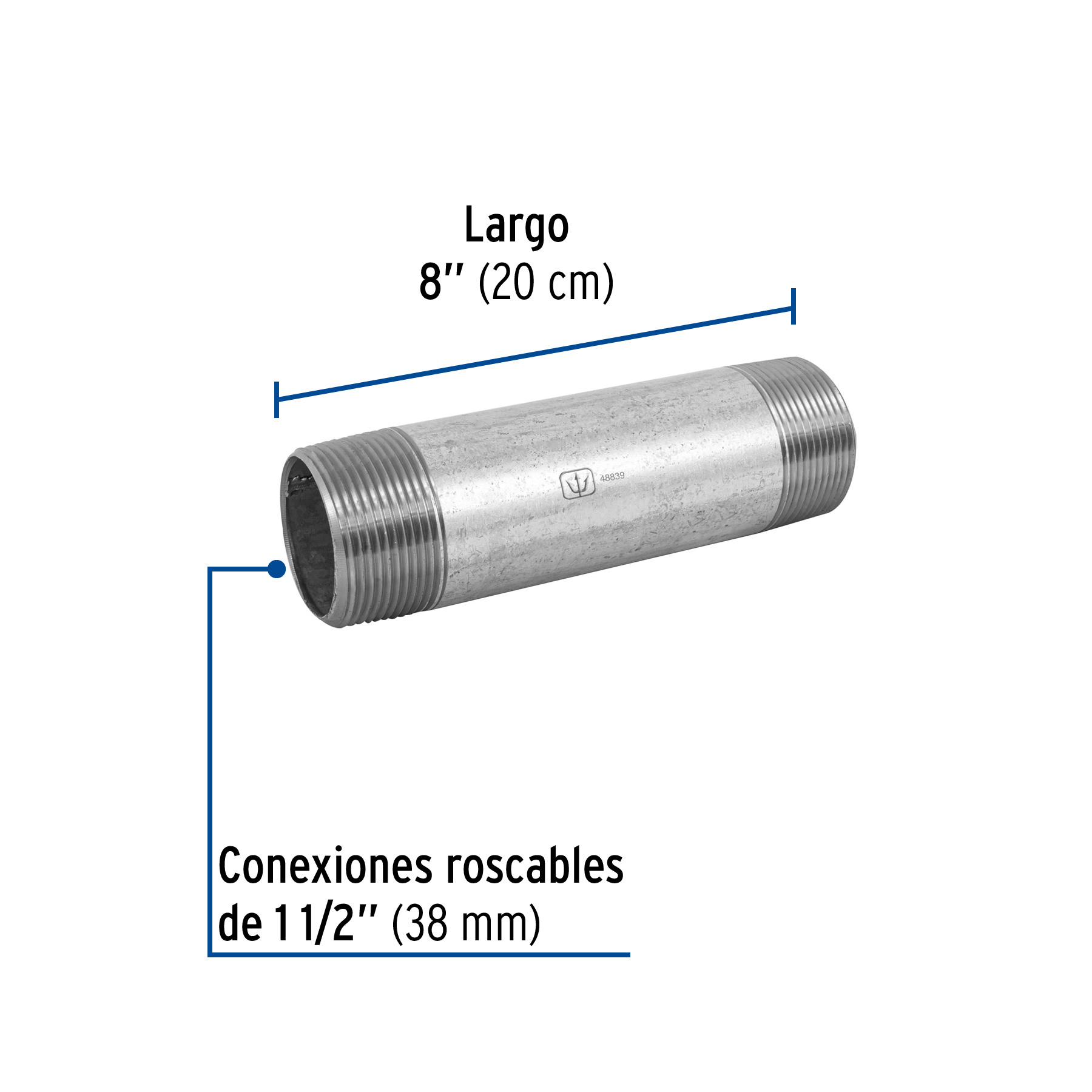 Niple de acero galvanizado 1-1/2 x 8′, Foset