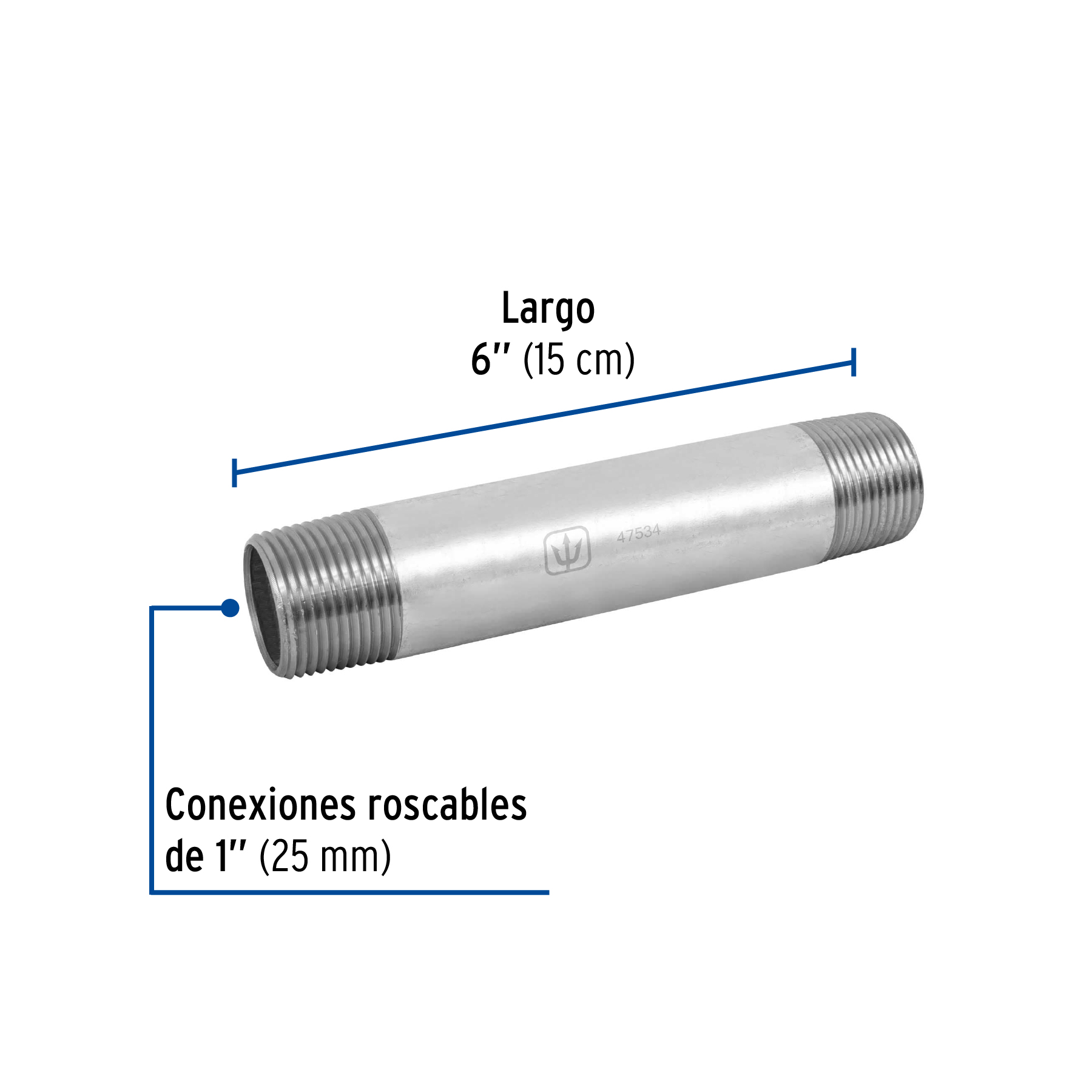 Sé el primero en valorar “Niple de acero galvanizado 1′ x 6′, Foset”