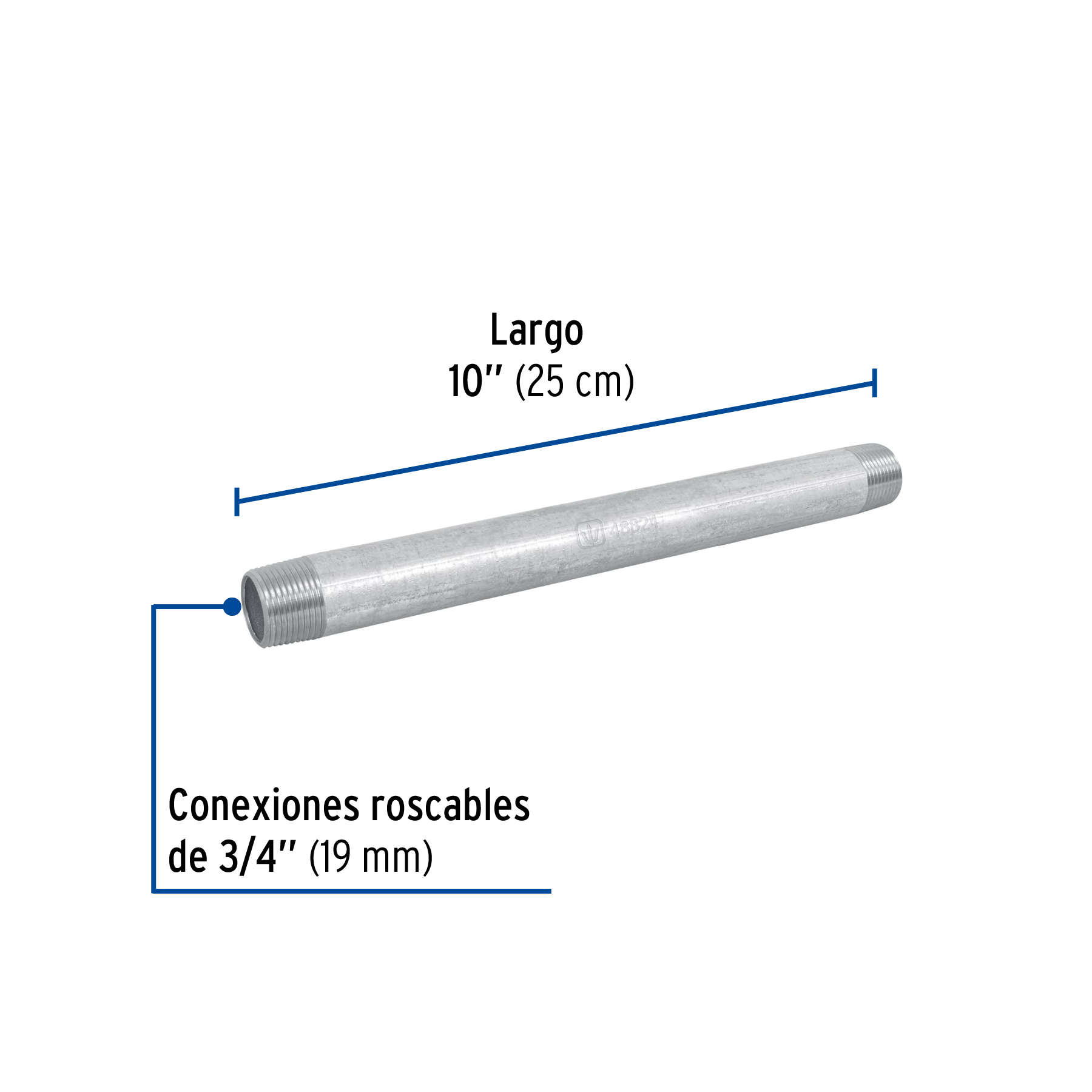 Niple de acero galvanizado 3/4 x 10′, Foset