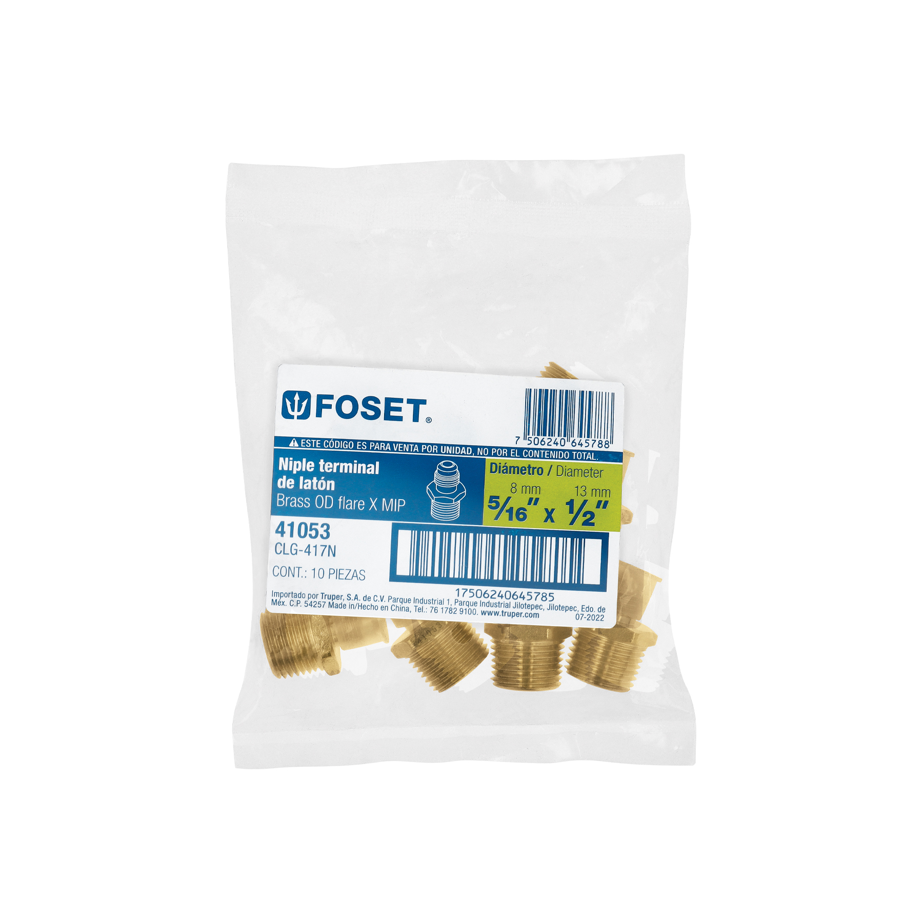 Niple terminal de latón de 5/16′ X 1/2′, Foset