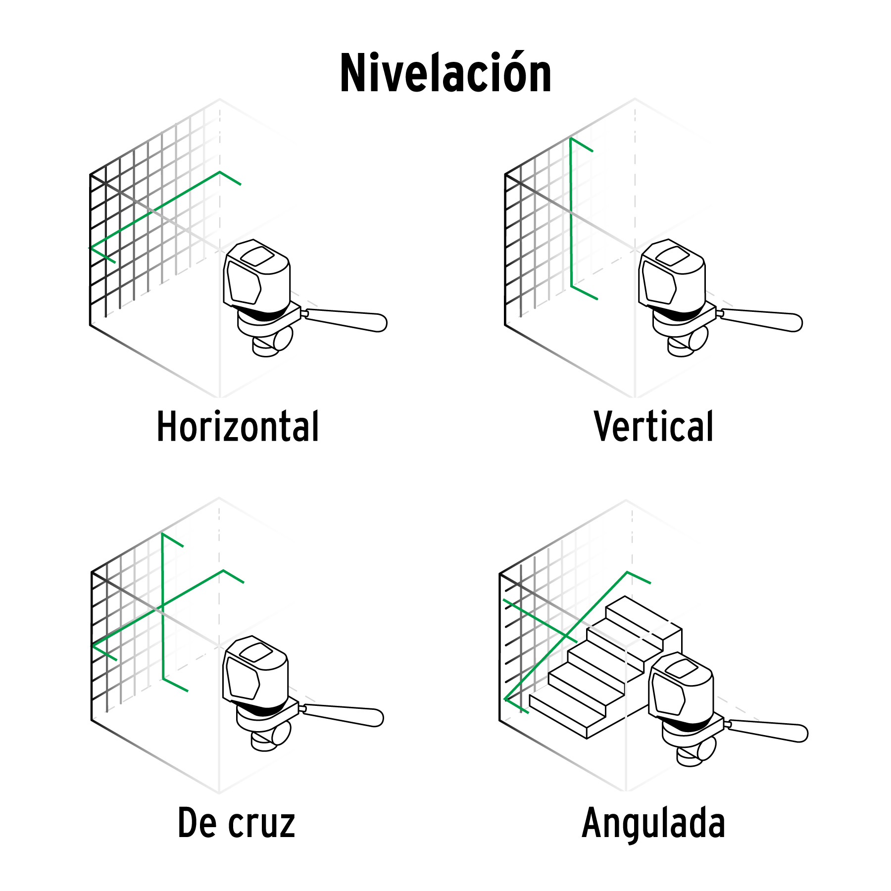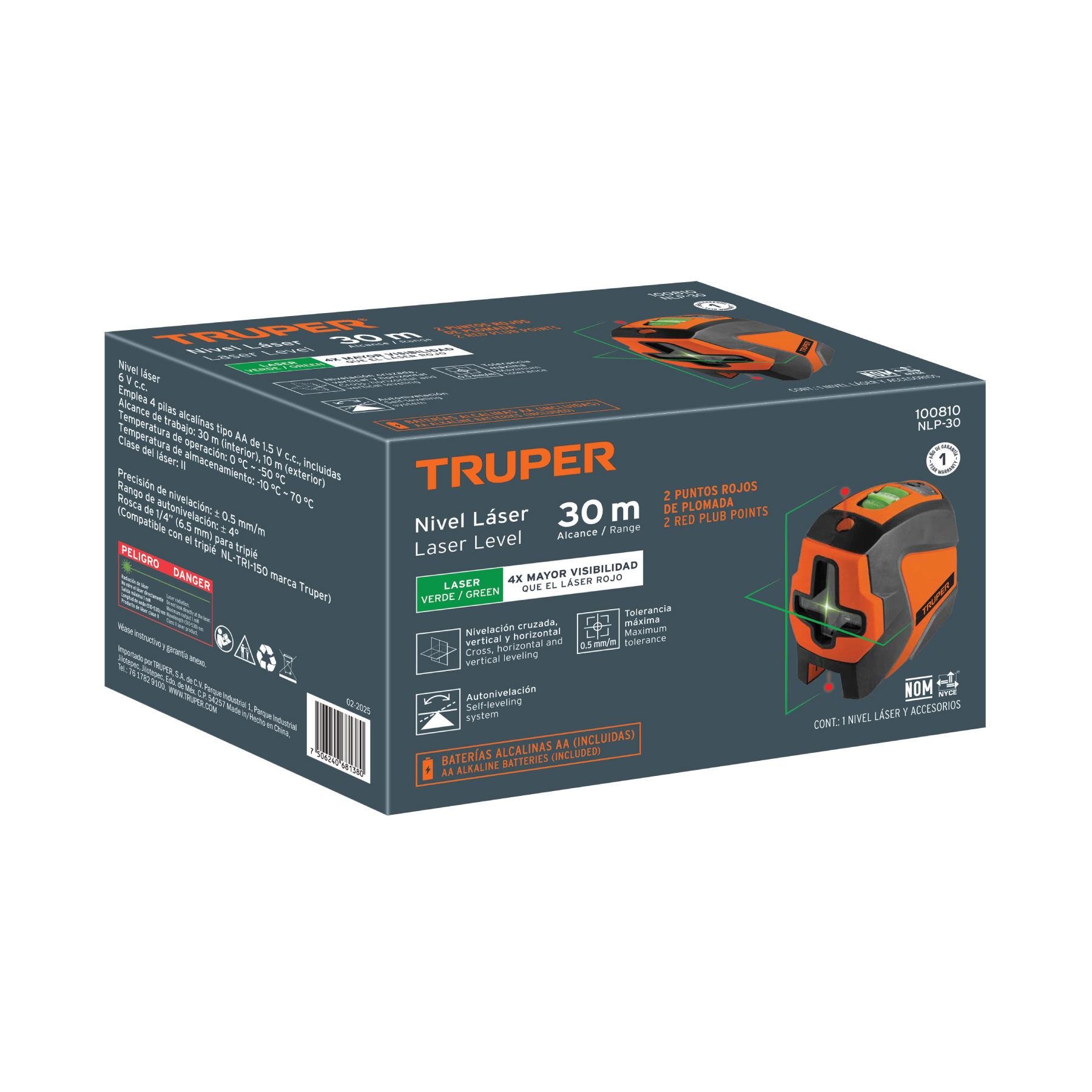 Nivel láser verde c/plomada, alcance 30 m, de pilas, TRUPER