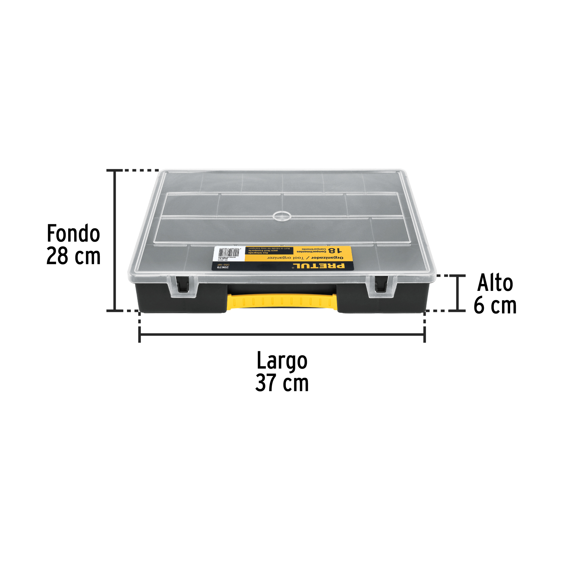 Organizador 14′ con 18 compartimentos, Pretul