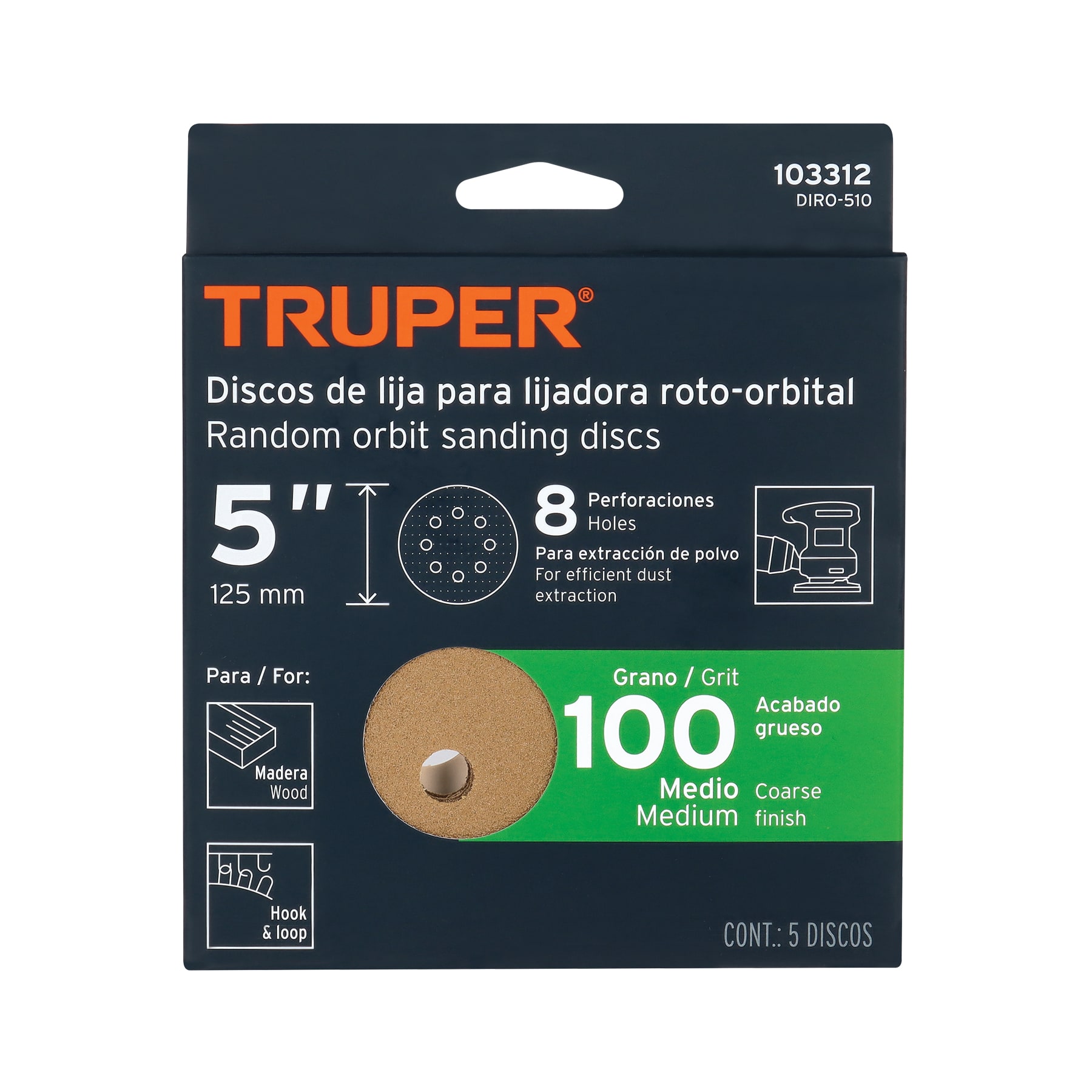 Paquete c/5 discos de lija 5′ grano 100, 8 perforaciones