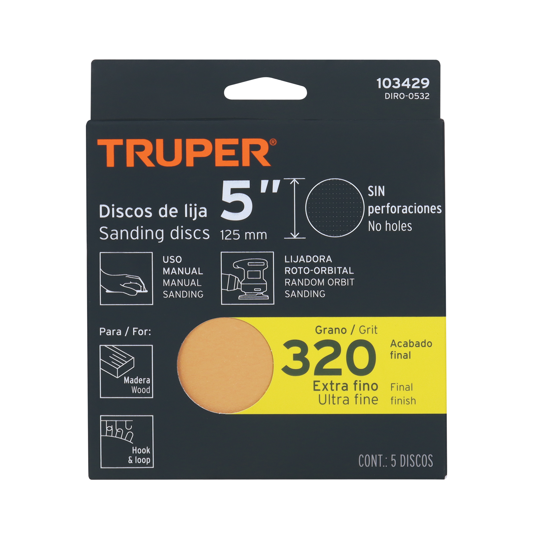 Paquete c/5 discos de lija 5′ grano 320, ciegos