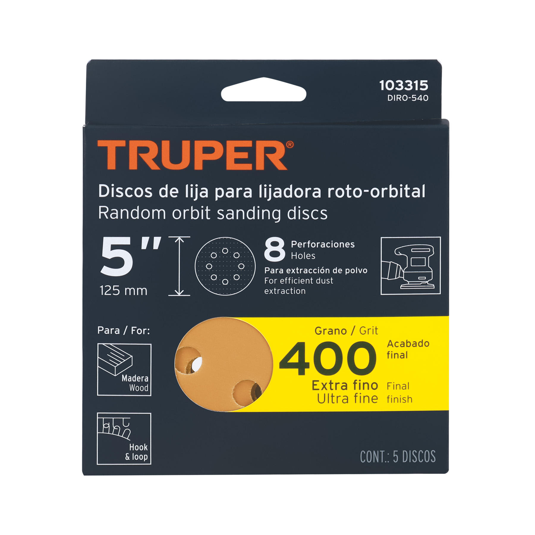 Paquete c/5 discos de lija 5′ grano 400, 8 perforaciones