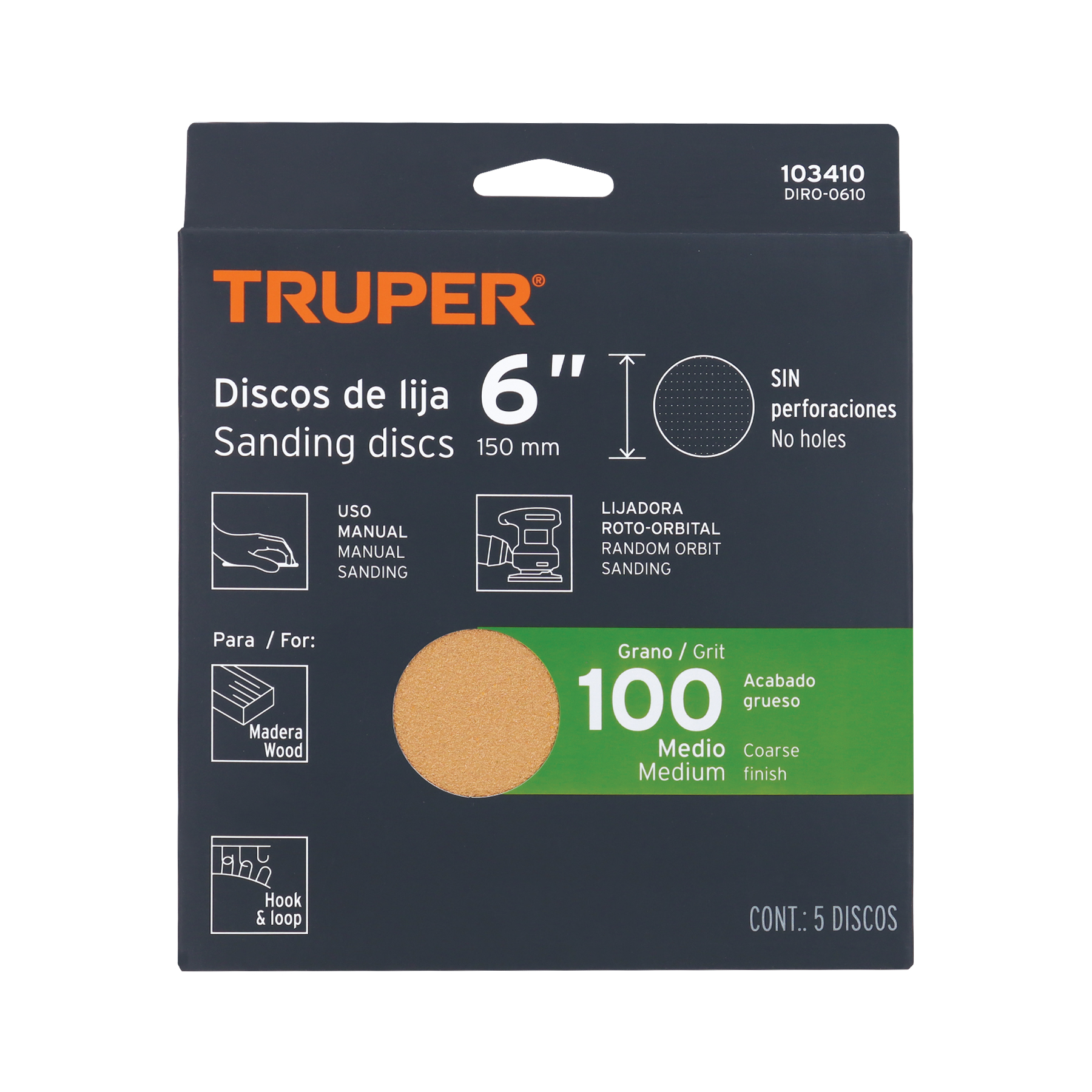 Paquete c/5 discos de lija 6′ grano 100, ciegos